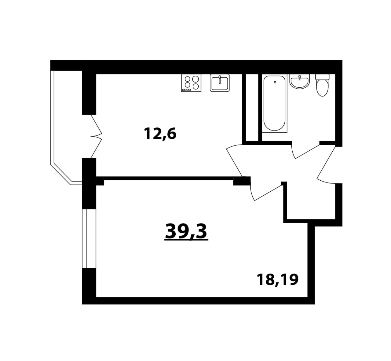 Общая площадь: 39,3 кв.м.,