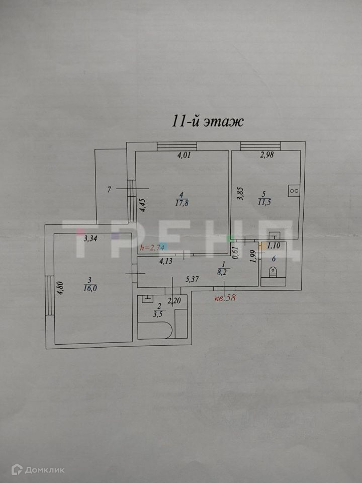 Жилая площадь 34 м2