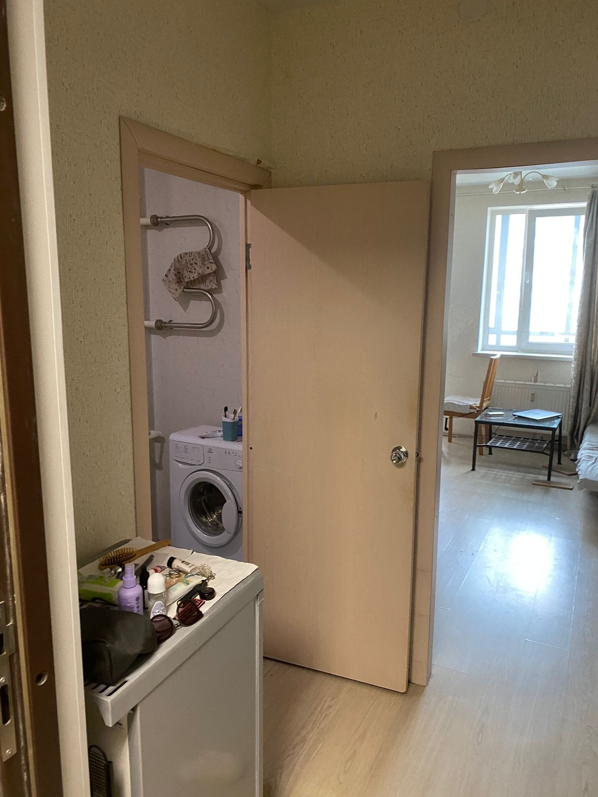 Удобная планировка. Комната квадратной формы. В коридоре большая ниша под шкаф. Застекленная лоджия.