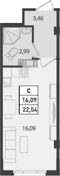Общая площадь 22.54 м2