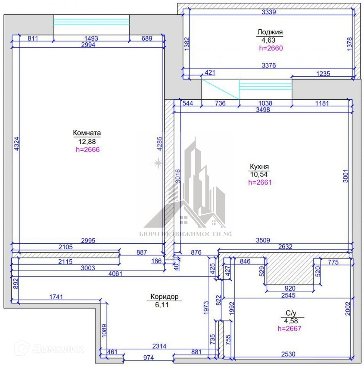 Высота потолков 2.7 м