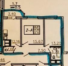 Общая площадь 55.7 м2