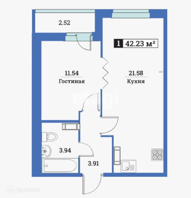Общая площадь 41 м2