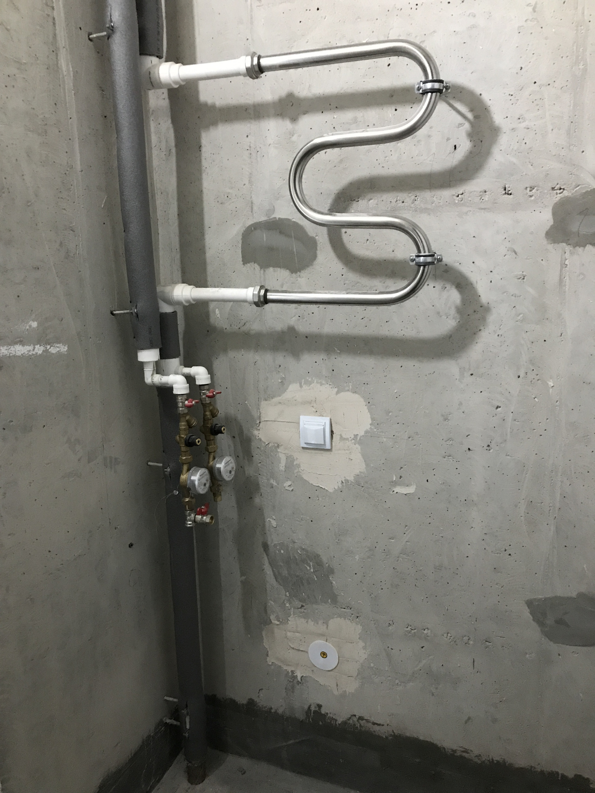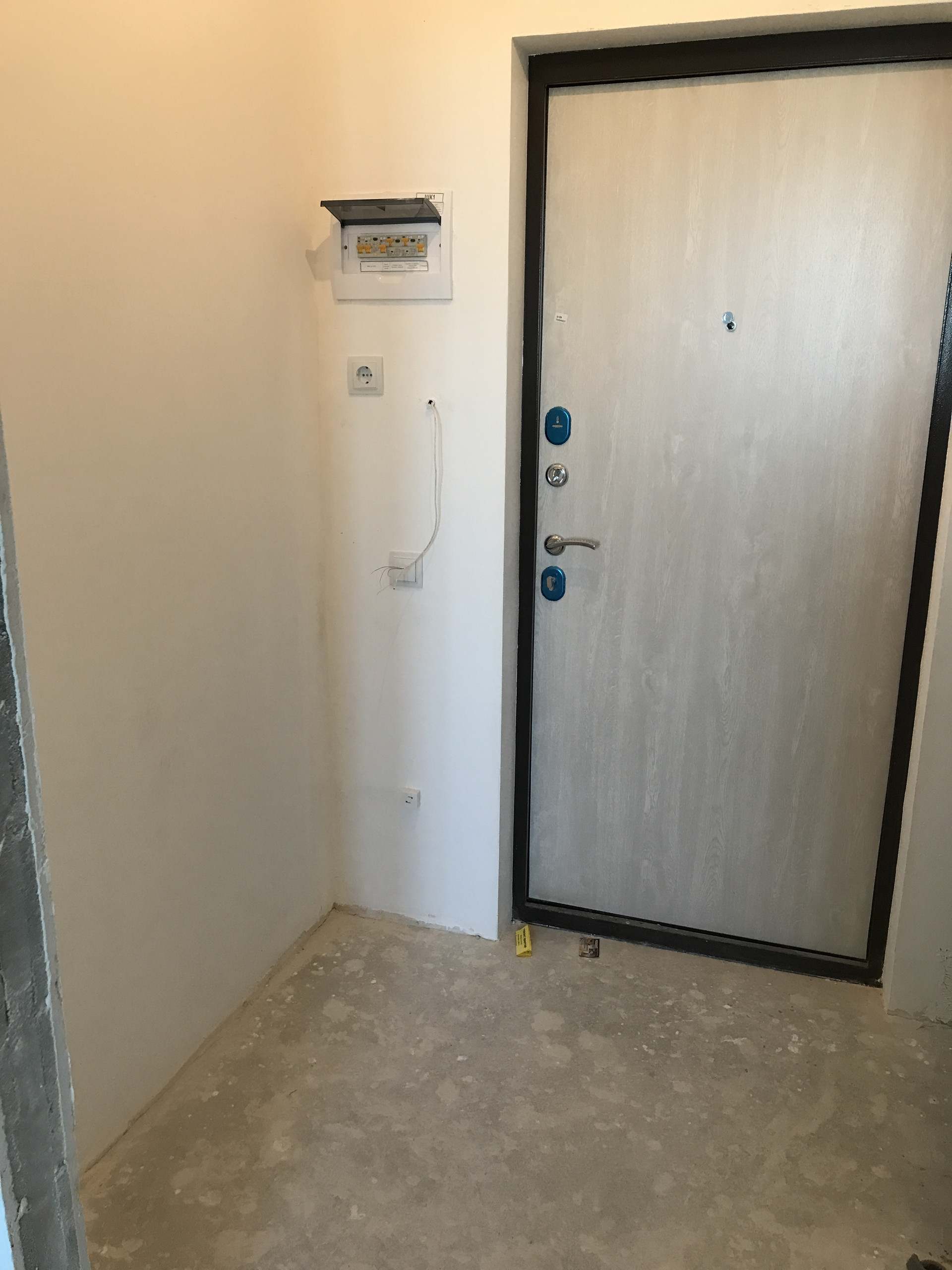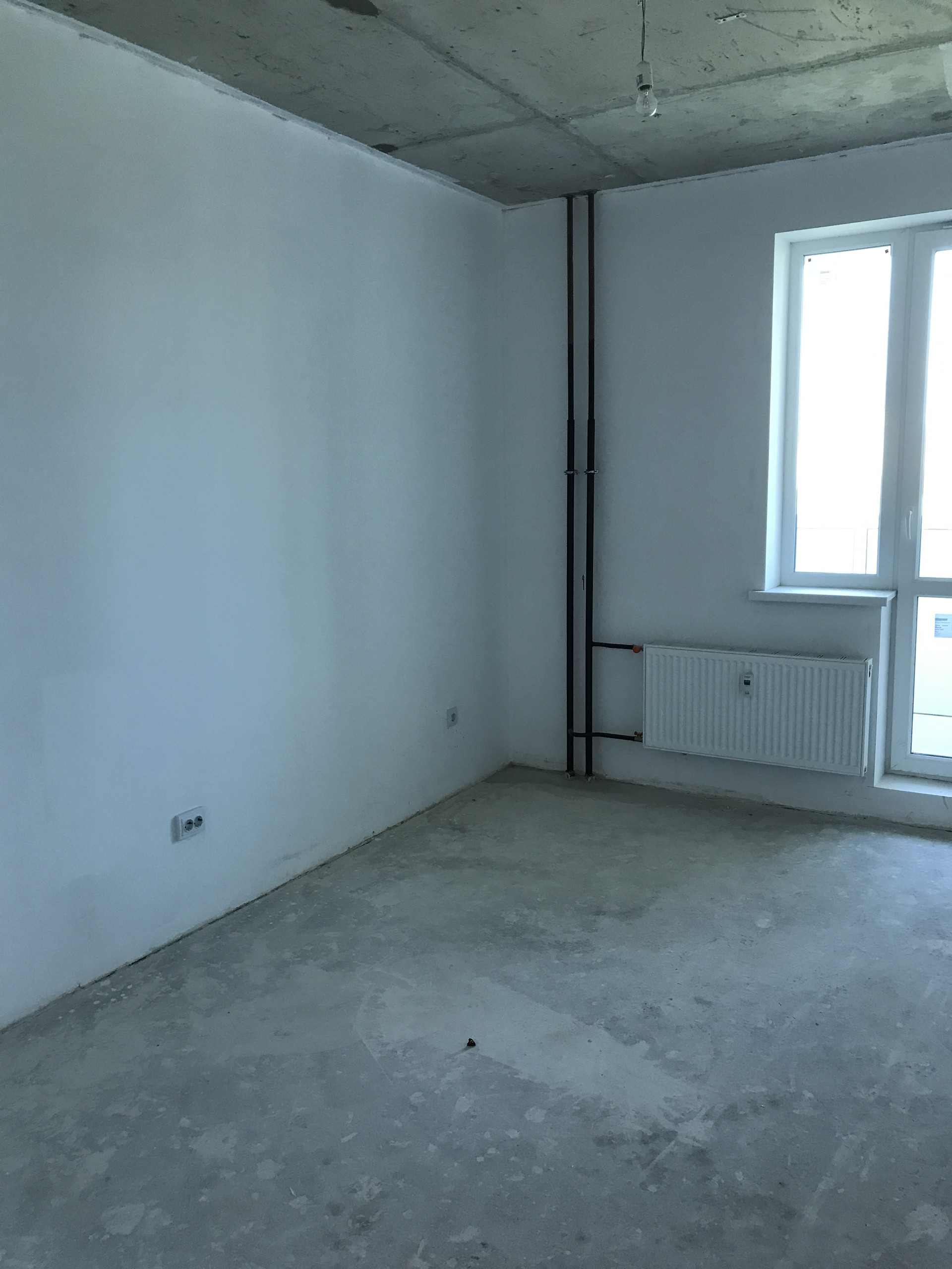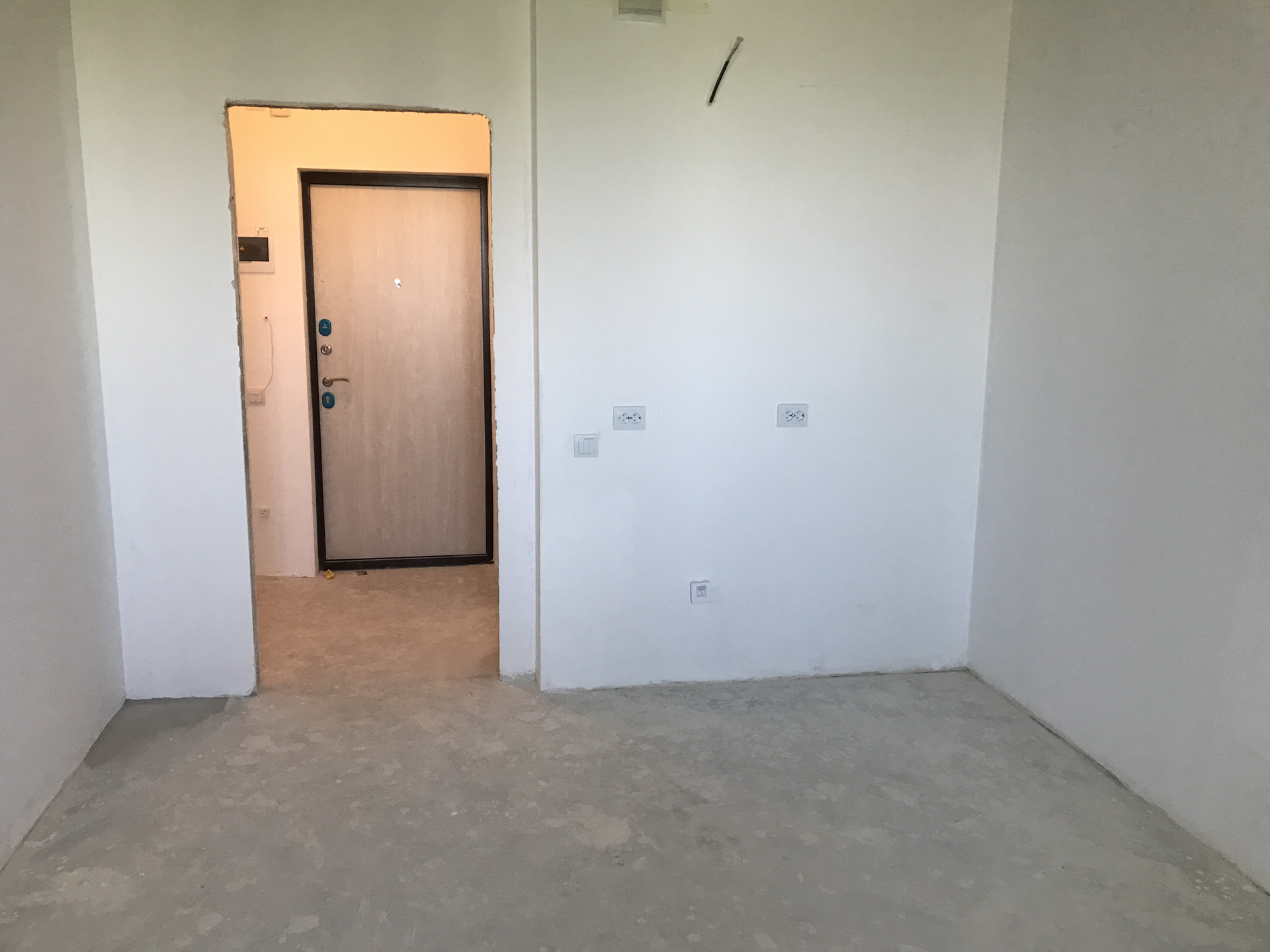 Студия очень симпатичная, компактная, произведена предчистовая отделка: выполнена стяжка пола, есть электрическая разводка по всей квартире, в санузле установлен полотенцесушитель и счетчики на воду, в комнате радиатор со счетчиком тепла, электросчетчик в прихожей.