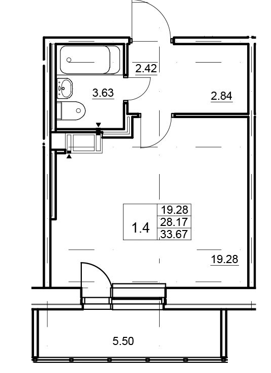 Общая площадь 33.67 м2