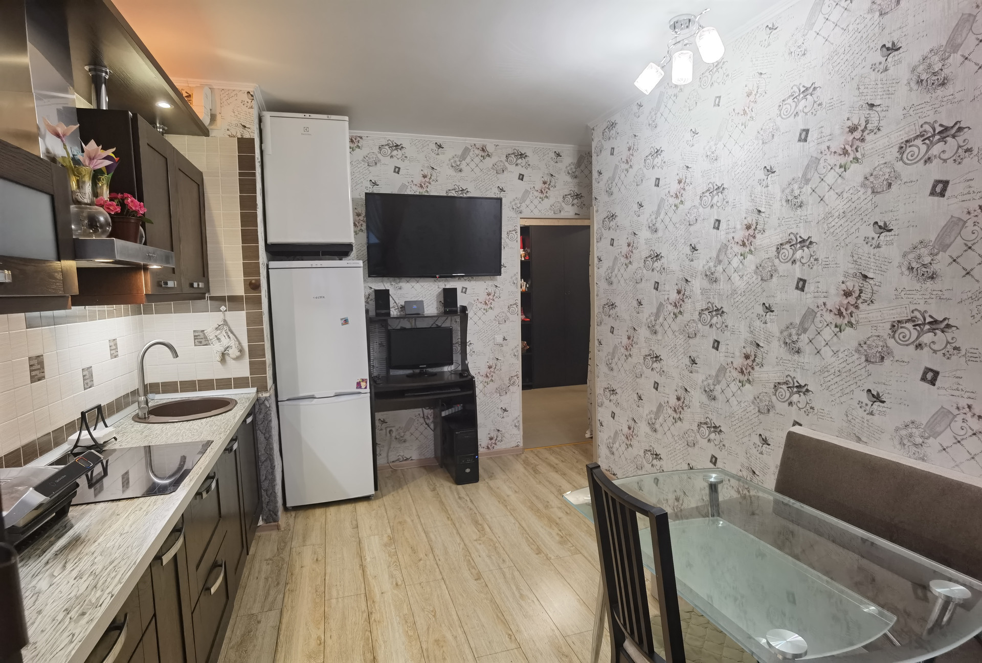 В КВАРТИРЕ ОСТАЮТСЯ: кухонный гарнитур со встроенной бытовой техникой Kuppersberg производства Германия (духовой шкаф, индукционная варочная панель, посудомоечная машина,вытяжка, микроволновая печь); шкафы для хранения от Икеа в холле, мебель в детской комнате (выполненная по индивидуальному заказу), мебель в ванной и санузле.