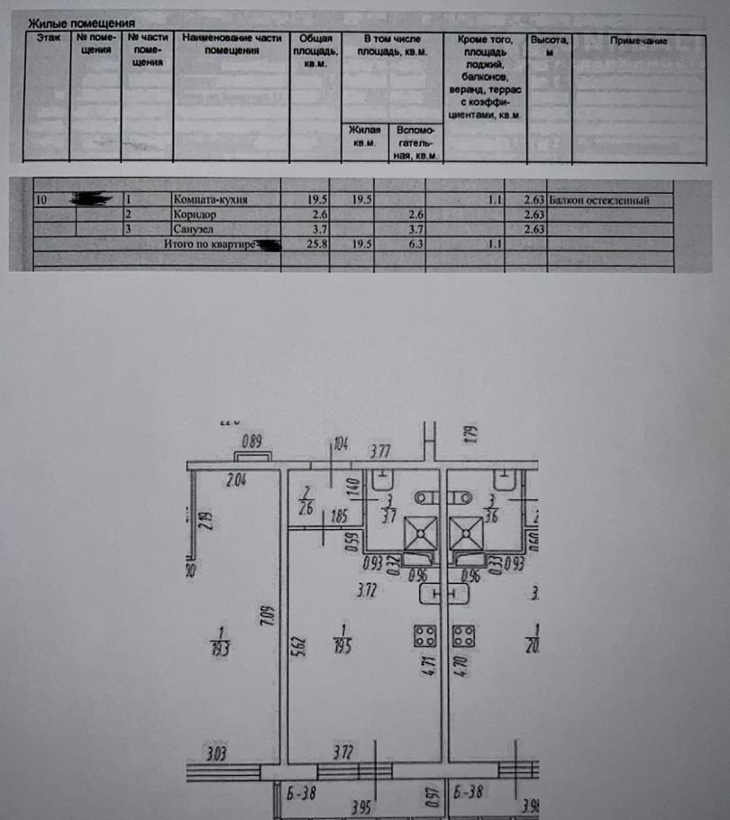 Общая площадь 25.8 м2