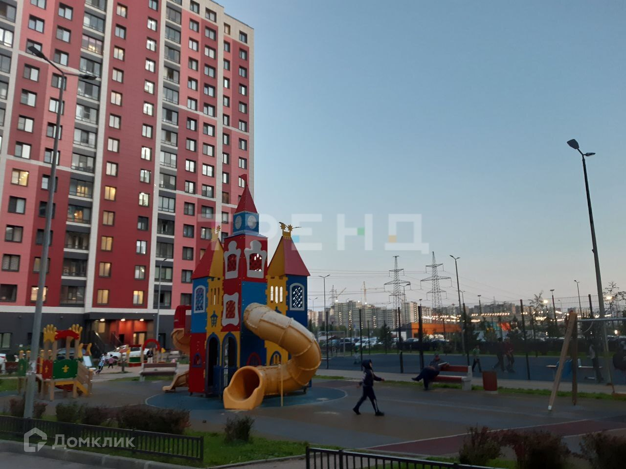 На первом этаже коммерческие помещения: пекарни, салоны красоты,магазины. Рядом с домом пешеходная аллея, фонтан и зимний каток. От метро 20 минут пешком или 6 минут езды на общественном транспорте.