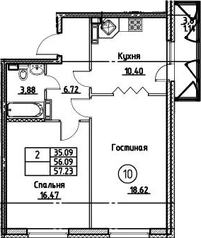 Общая площадь 57 м2