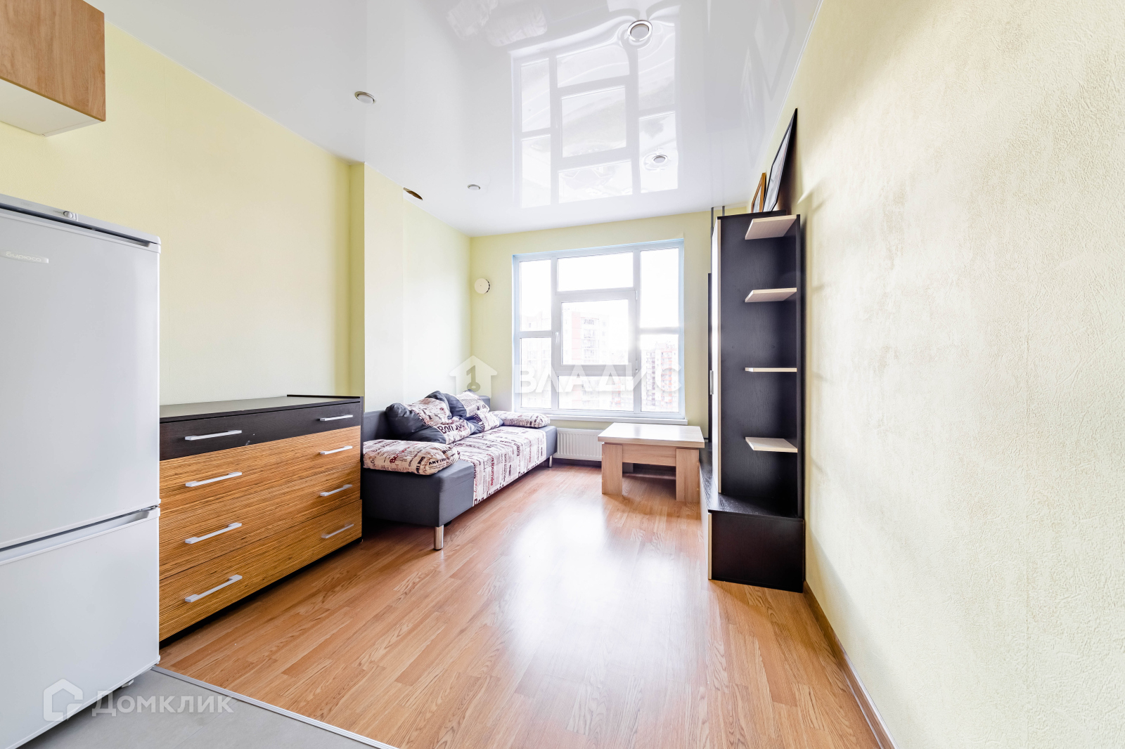 Квартира расположена на 13-м этаже с удобной планировкой: комната-гостиная 16.6 м.2, санузел 3.8м2. Квартира с ремонтом, ремонт делался "под себя",  в отличном состоянии. В санузеле положена плитка, установлена угловая ванная. В коридоре и в комнате в зоне кухни на полу- керамогранит, в комнате ламинат. Установлены натяжные потолки со светильниками. Квартира Квартира полностью укомплектована мебелью и техникой,  отлично подходит как для проживания, так и для сдачи в аренду.