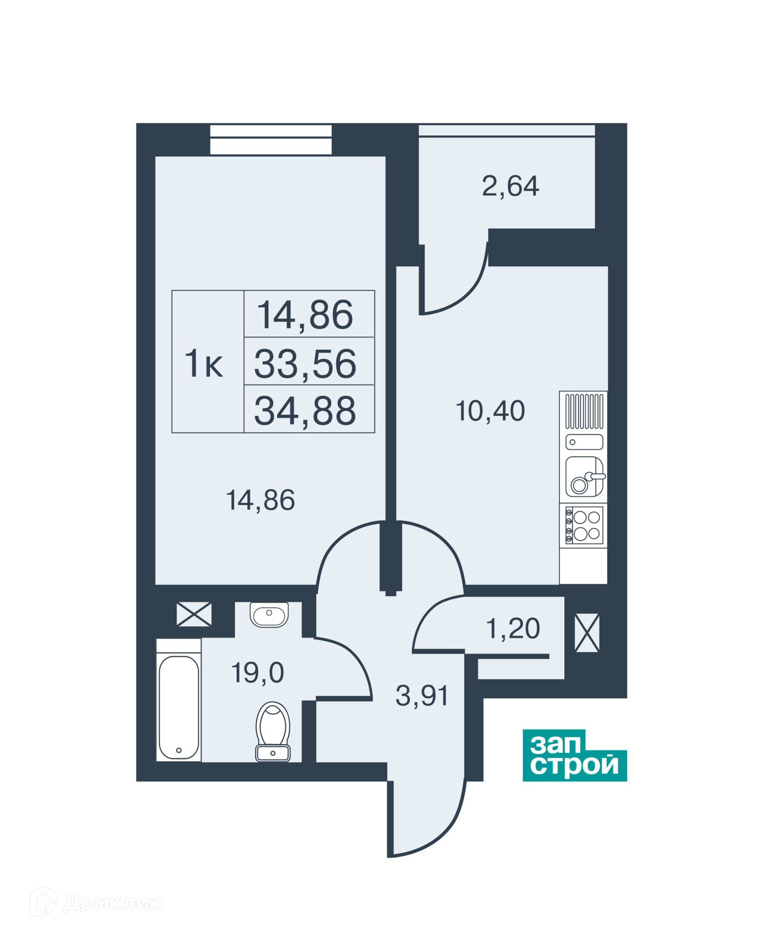 Общая площадь 34 м2