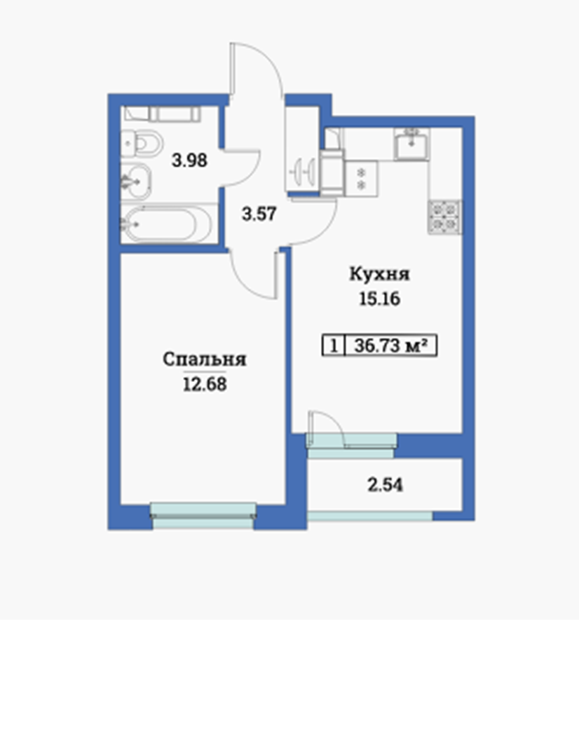 Общая площадь 36.73 м2