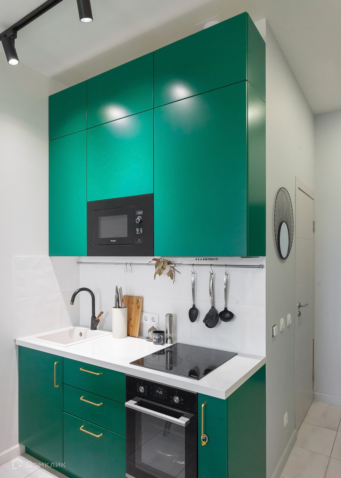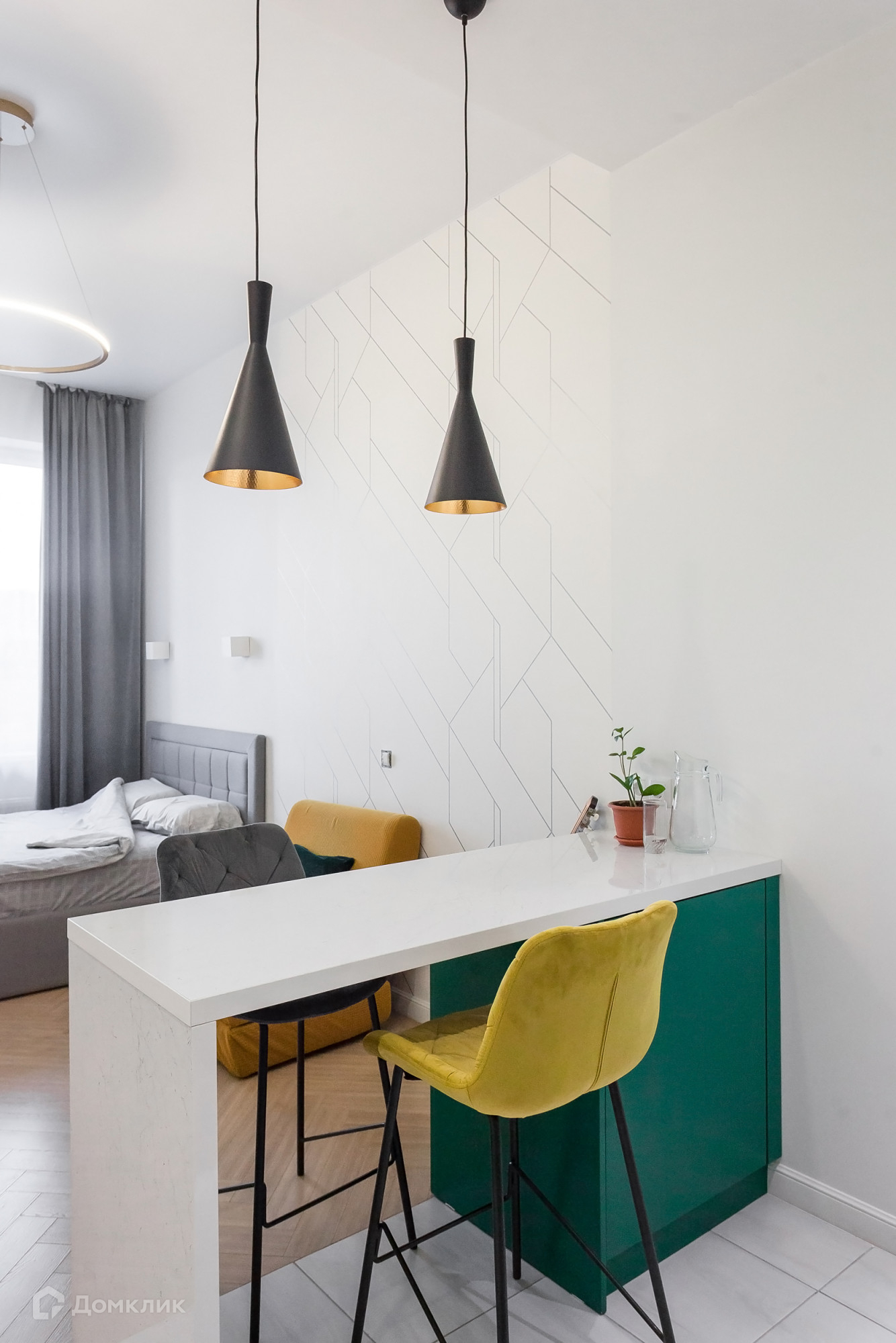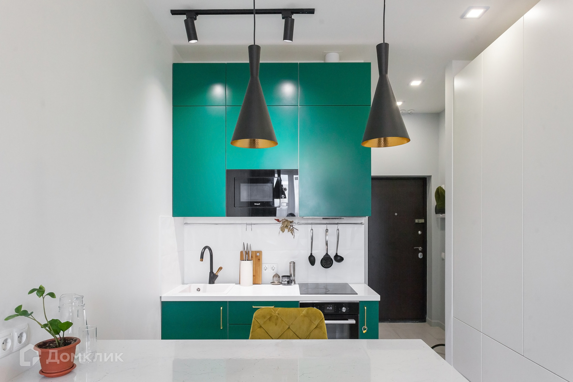 Выполнен качественный ремонт, есть все необходимое для проживания (кровать, кухонный гарнитур с барной стойкой, холодильник, варочная панель, духовой шкаф, микроволновая печь, стиральная машина, большой шкаф);