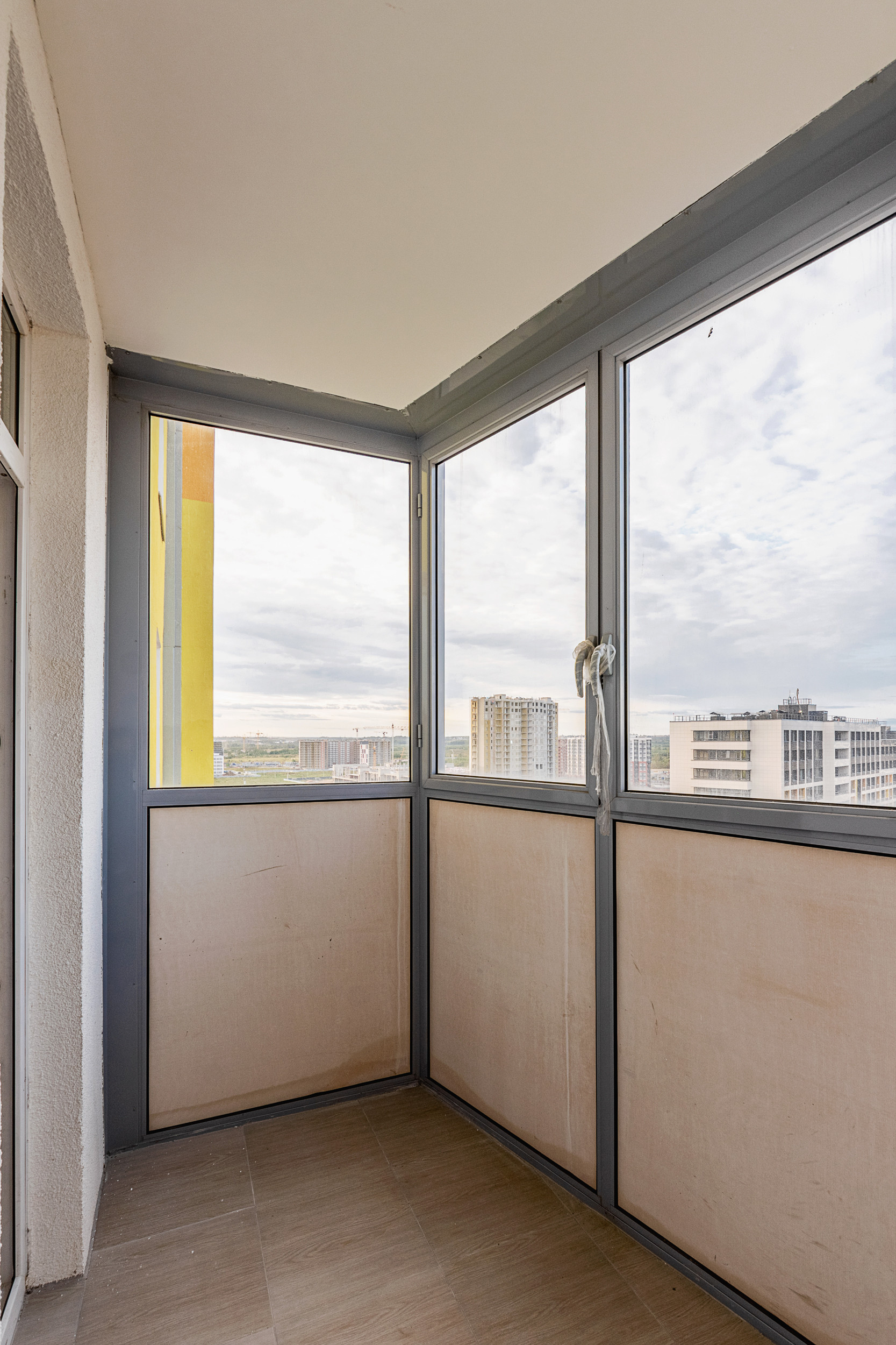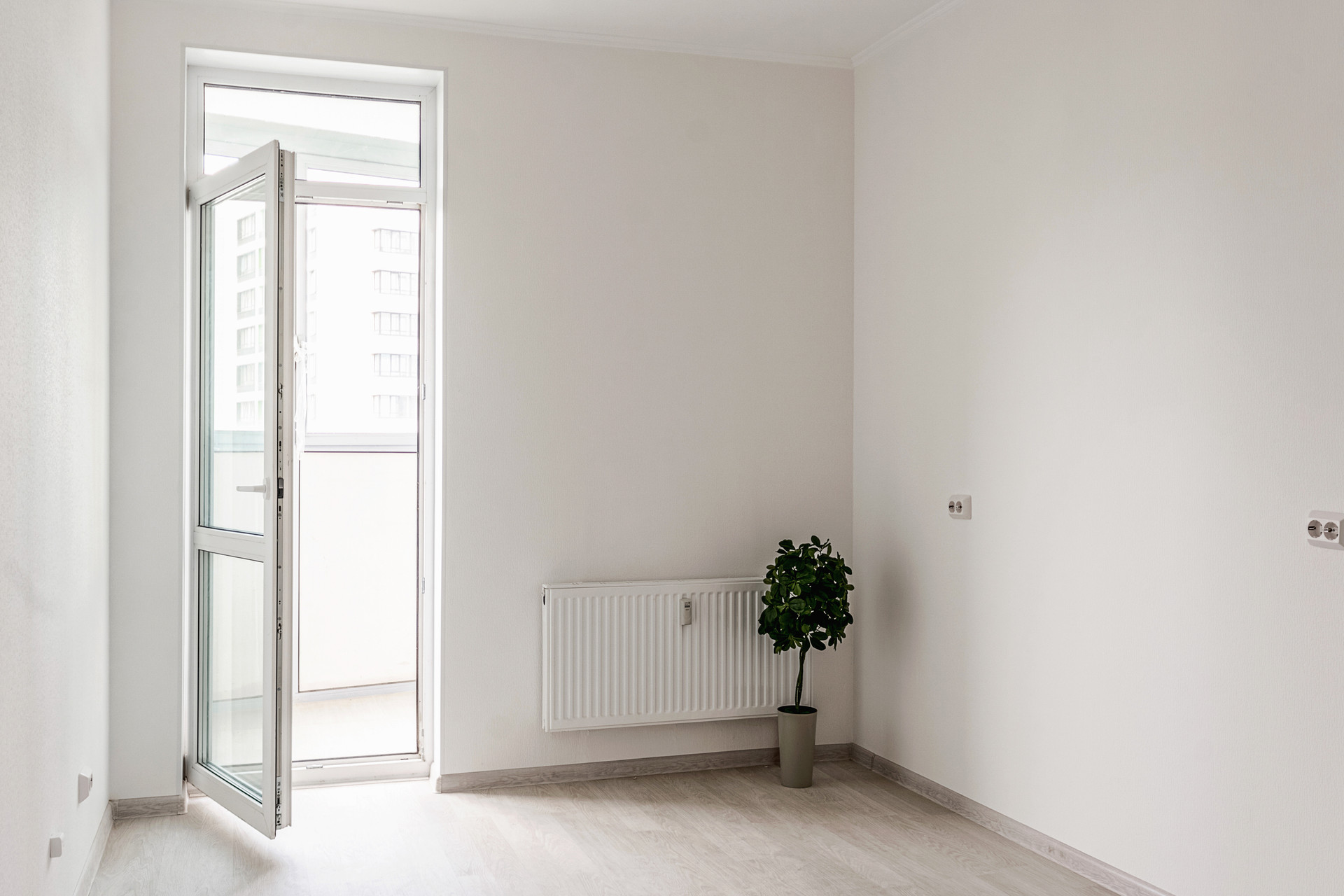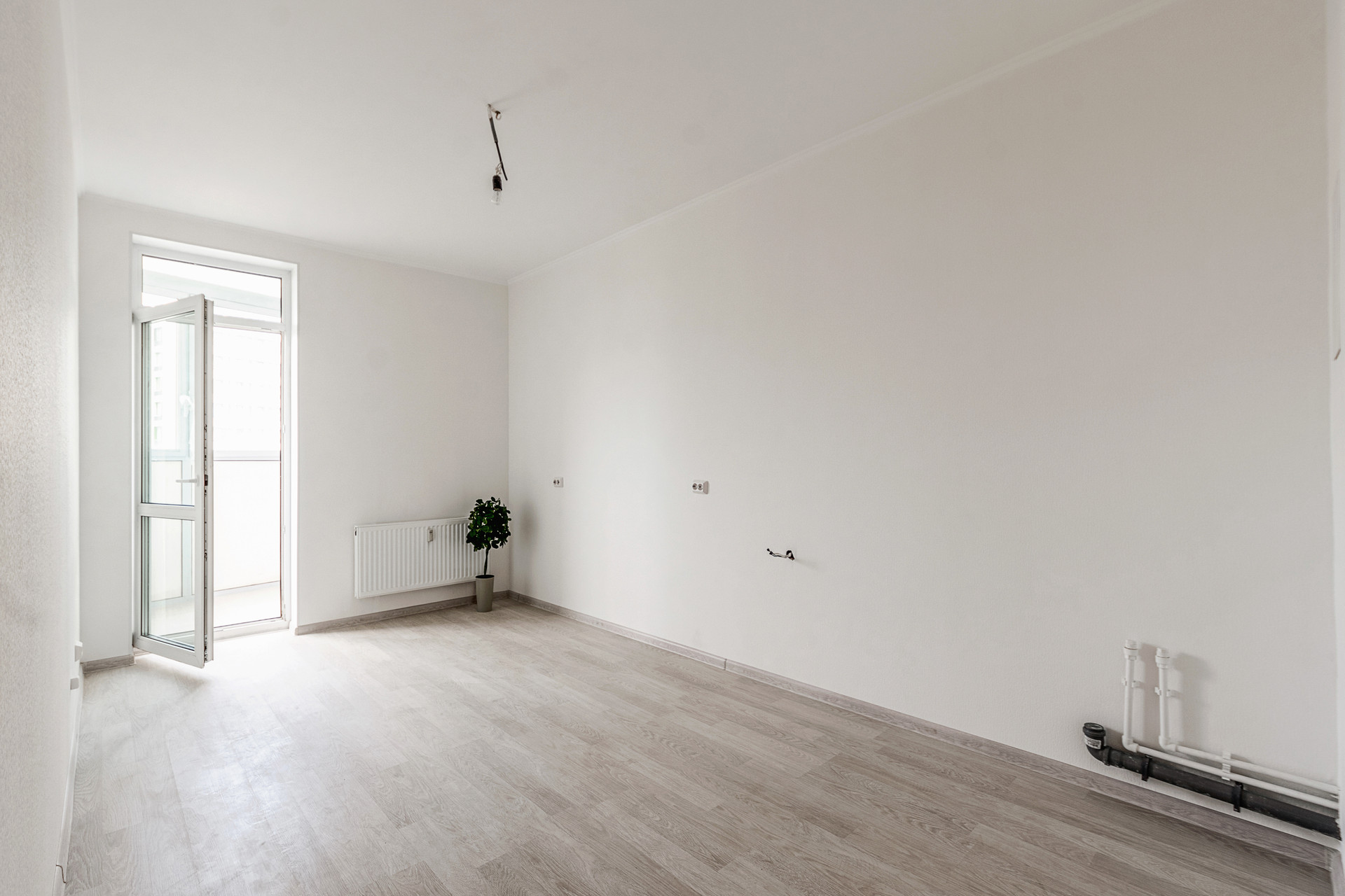 на полу - стяжка, подготовленная под финишное покрытие,