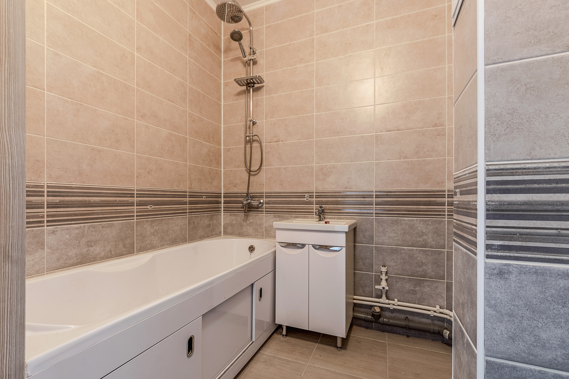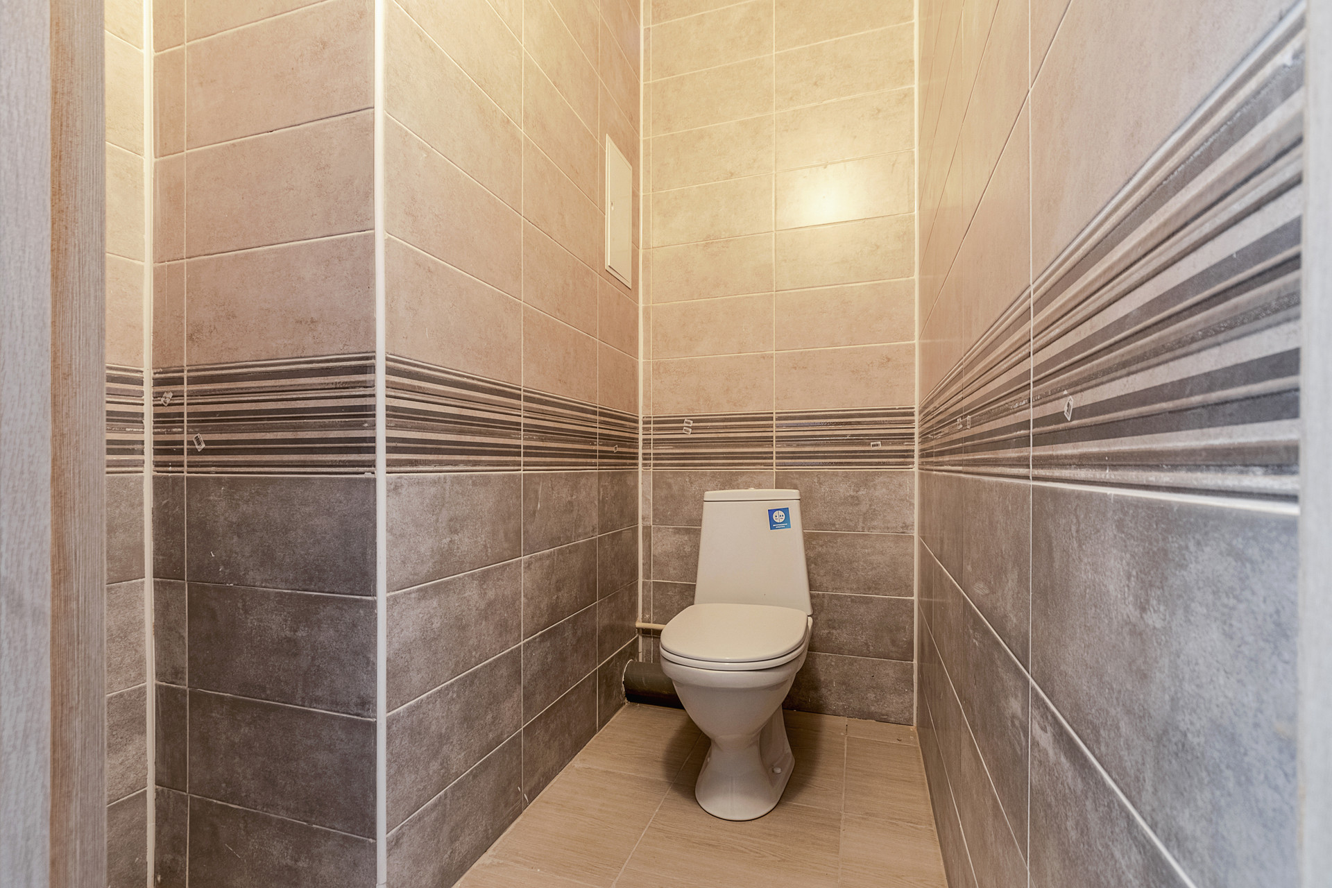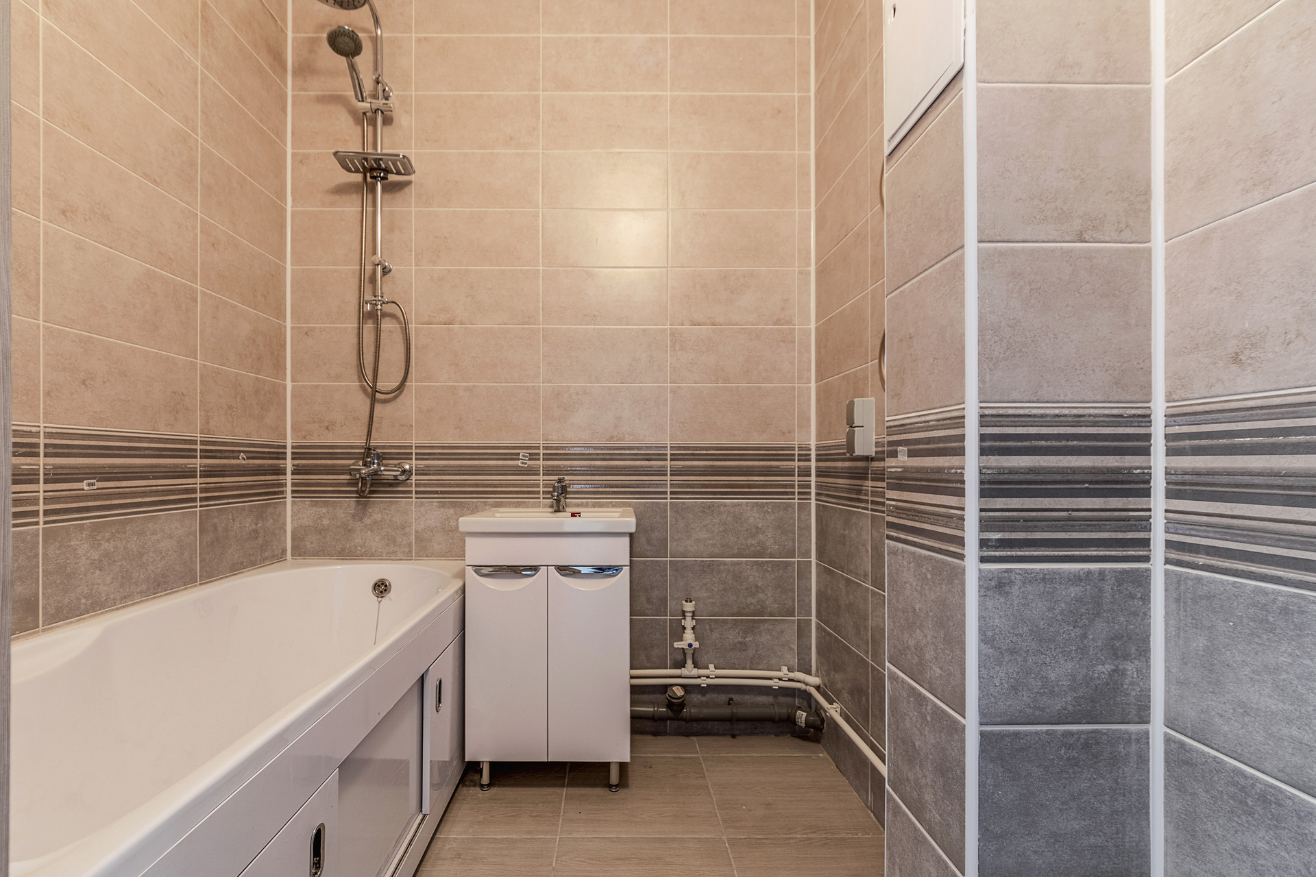 на стенах и на полу уложена керамическая плитка,