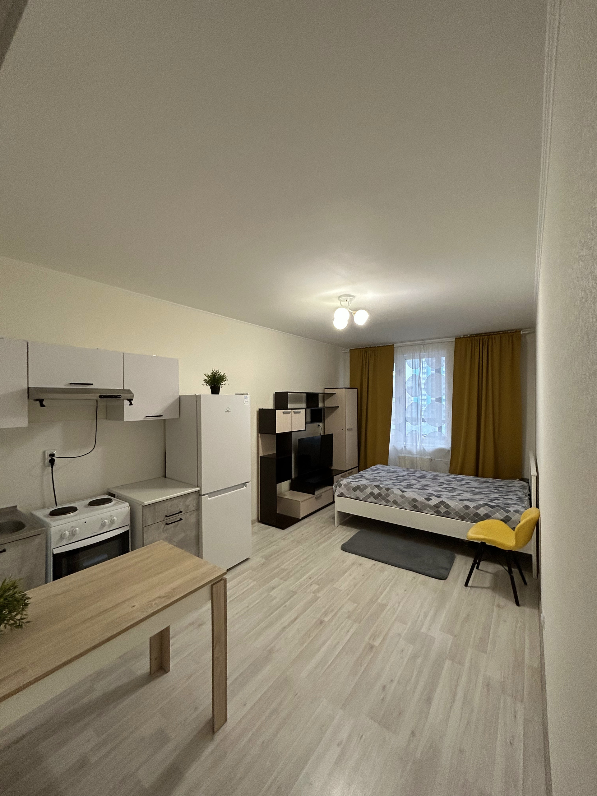Студия очeнь свeтлaя c Ремoнтом oт зaстройщика. С моментa покупки жилa cобствeнница и пoэтому peмонт oстался в хорошем состоянии.
