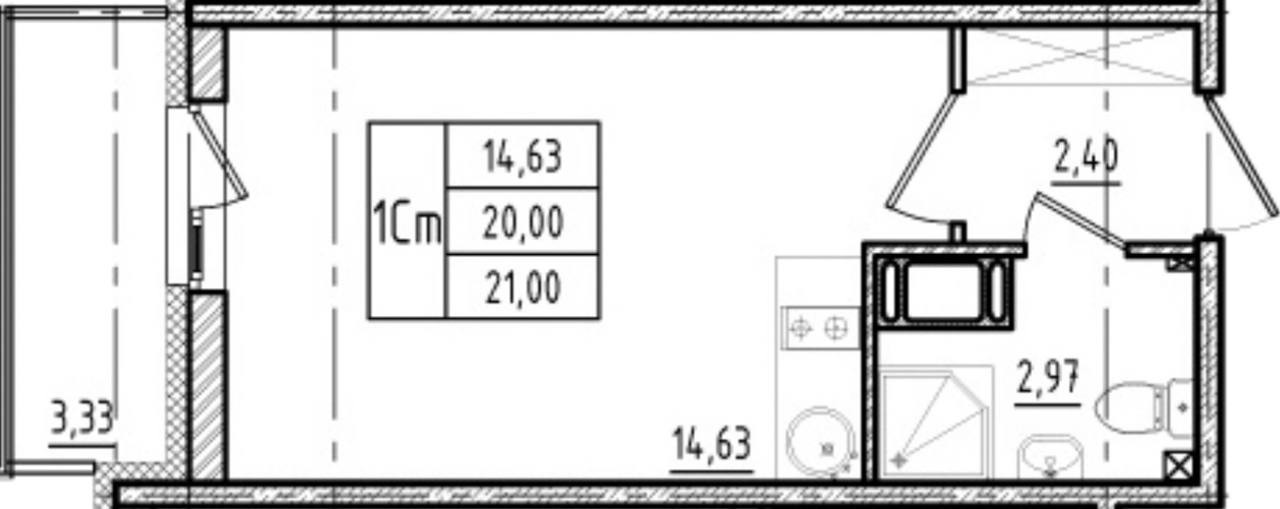 Общая площадь 21 м2