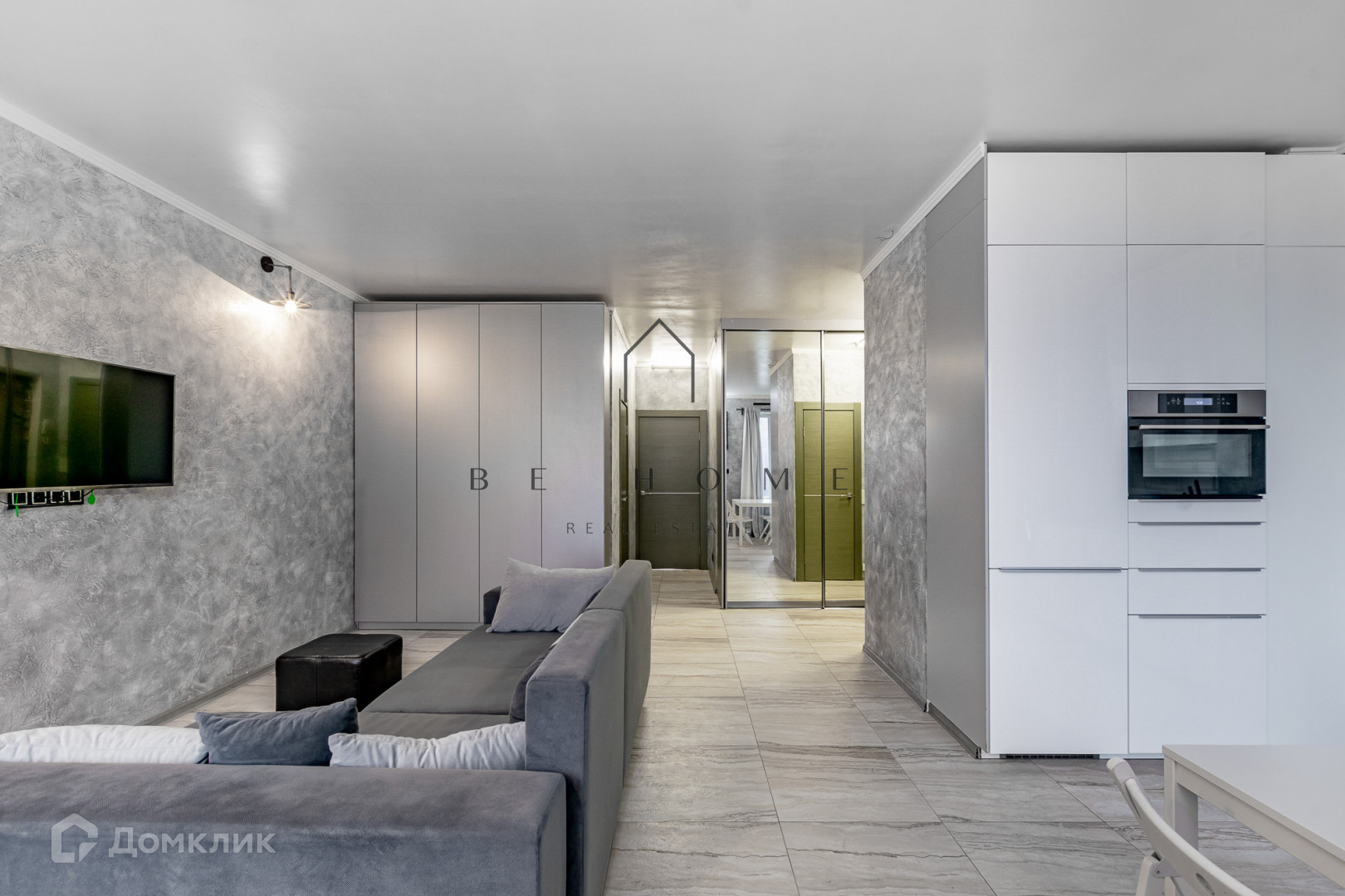 Вся мебель Икея (Швеция), сделана под заказ. Кухня гостиная со световым зонированием разных температур (более теплый диммируемый свет в гостиной, более холодный белый на кухне).