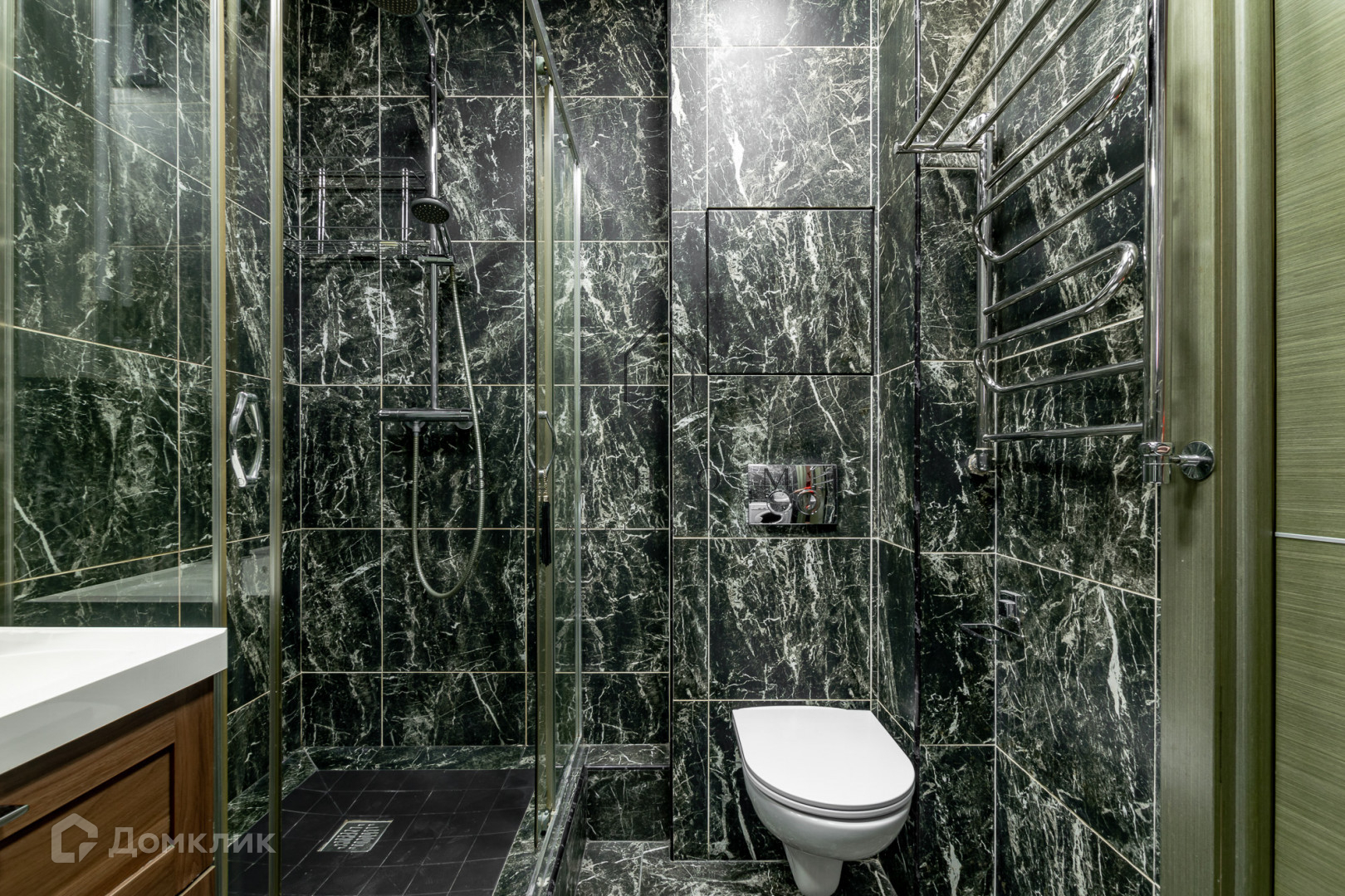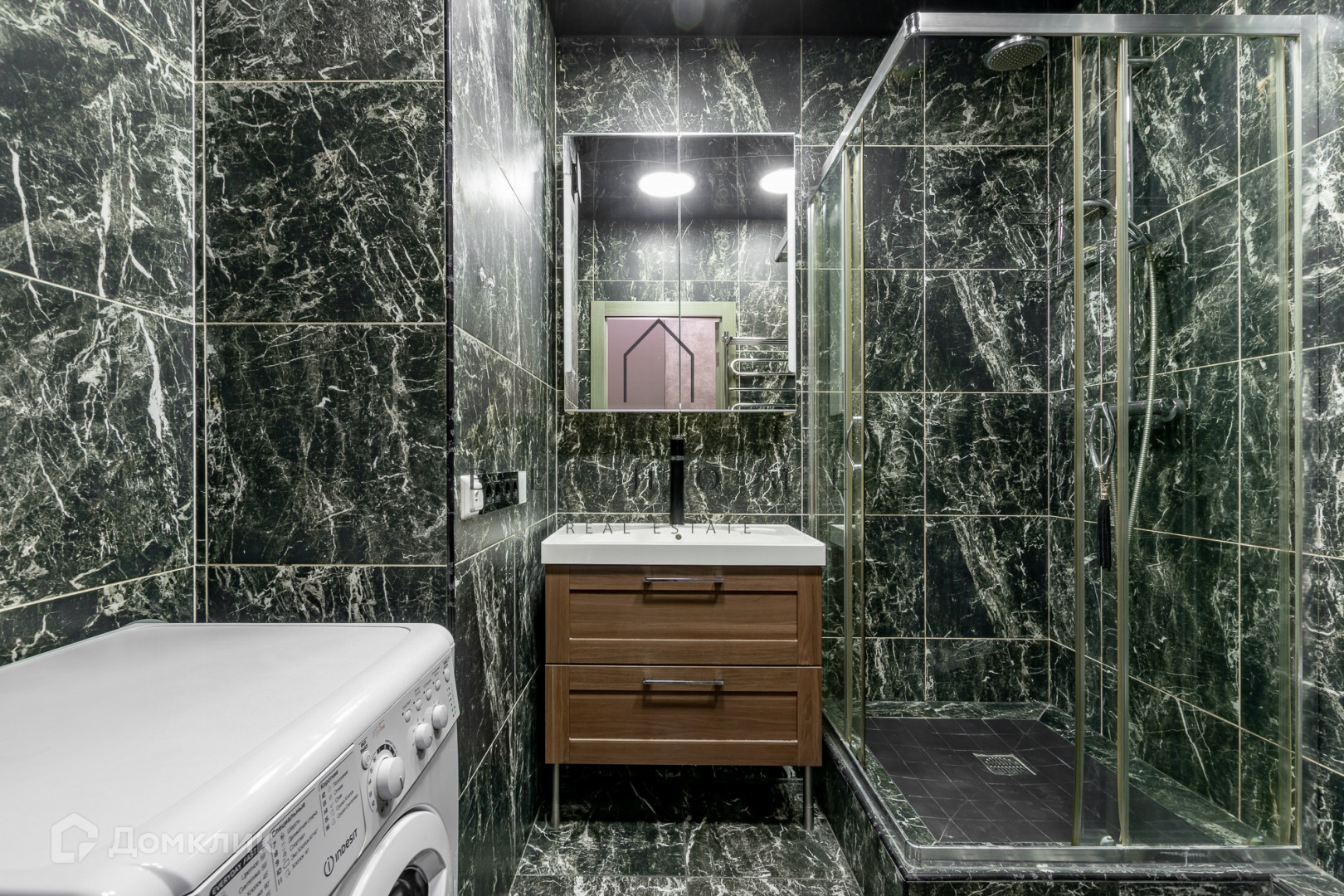 Ванная комната отделана крупной итальянской плиткой, сантехника импортная.