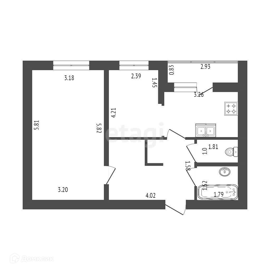 Общая площадь 48.3 м2