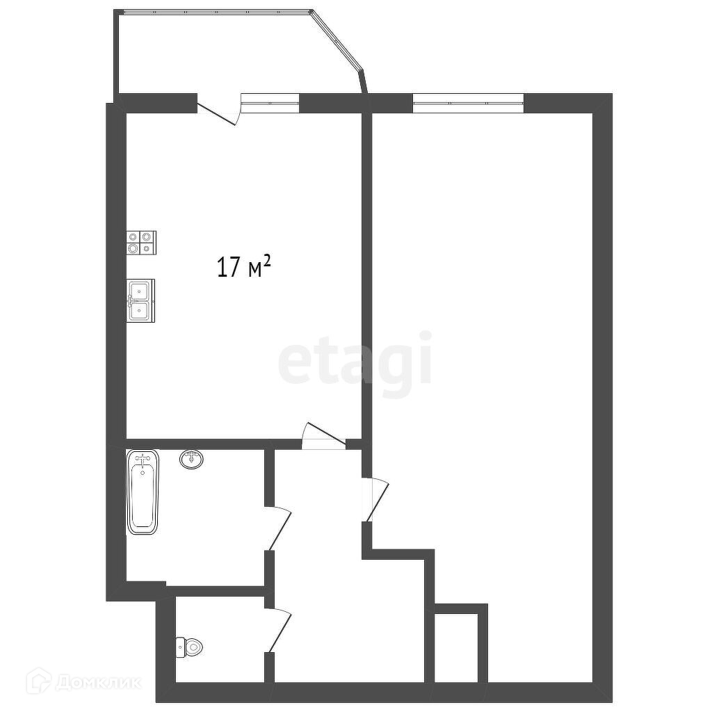 Квартира общей площадью 37 кв.м., площадь комнаты 11 кв.м., кухня-зал 16,7 кв.м, ванная 2,9 кв.м, туалет 1,3 кв.м, прихожая 4,2 кв.м, лоджия застекленная 2,8 кв.м. Высота потолков 2,60 м.