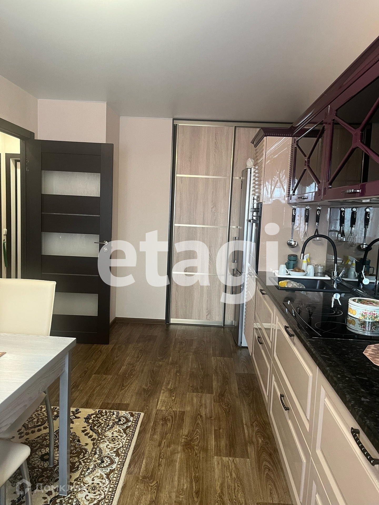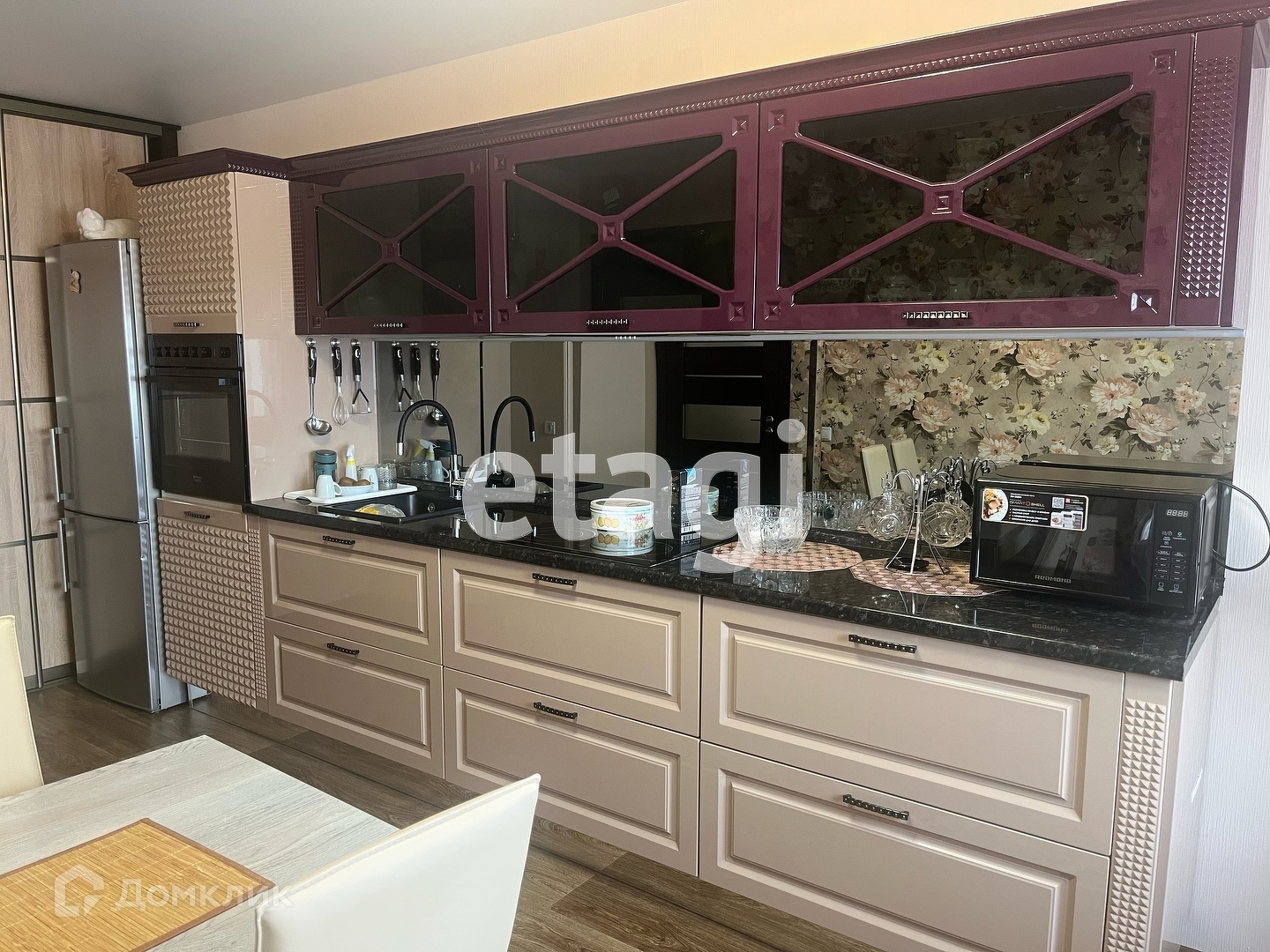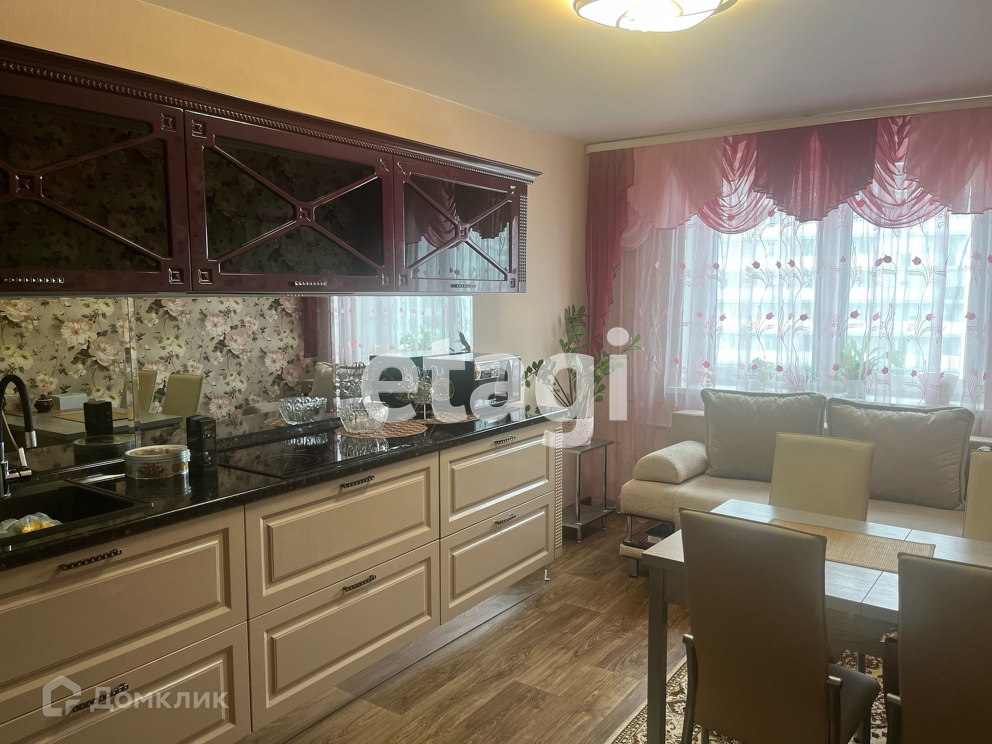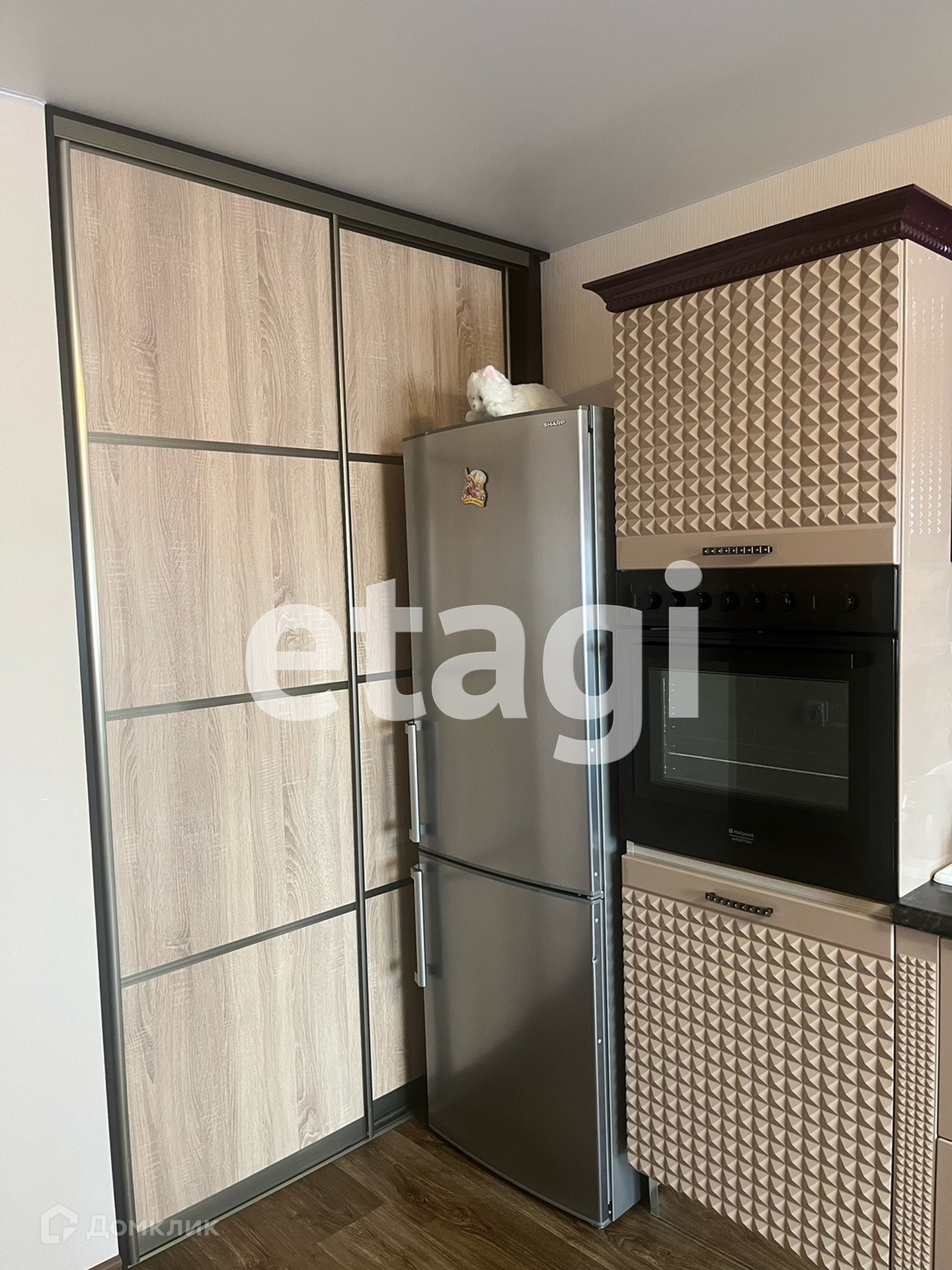 В квартире выполнена чистовая отделка, установлена кухонноя мебель со всей встроенной техникой:духовой шкаф,варочная панель,встраиваемый холодильник.Также в гостиной имеется диван и встраиваемый шкаф,который можно использовать для дополнительного хранения.В комнате диван,тумба с телевизоров.В коридоре вместительный шкаф. Вся мебель и техника включены в стоимость.