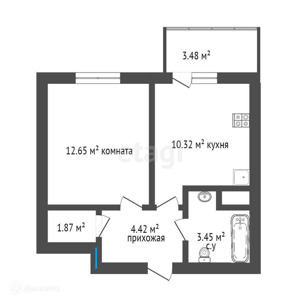 Общая площадь 34.5 м2