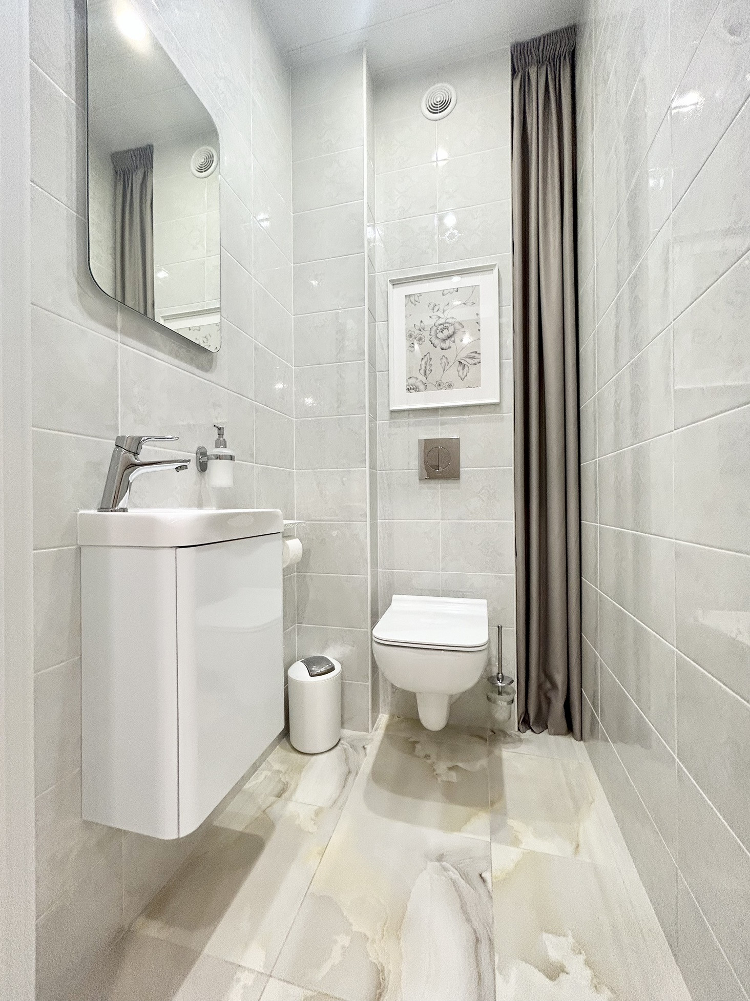- в санузле бойлер, зеркало с подогревом и подсветкой;