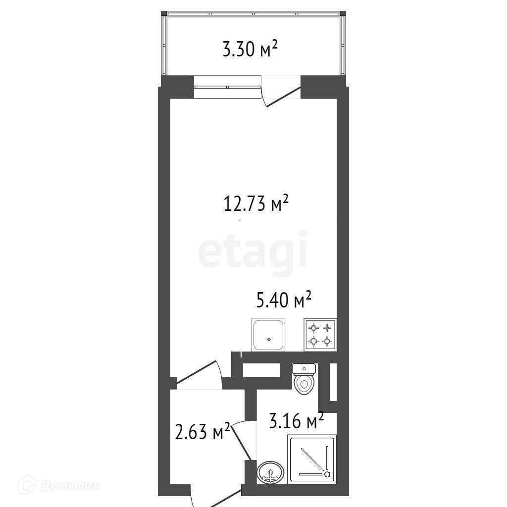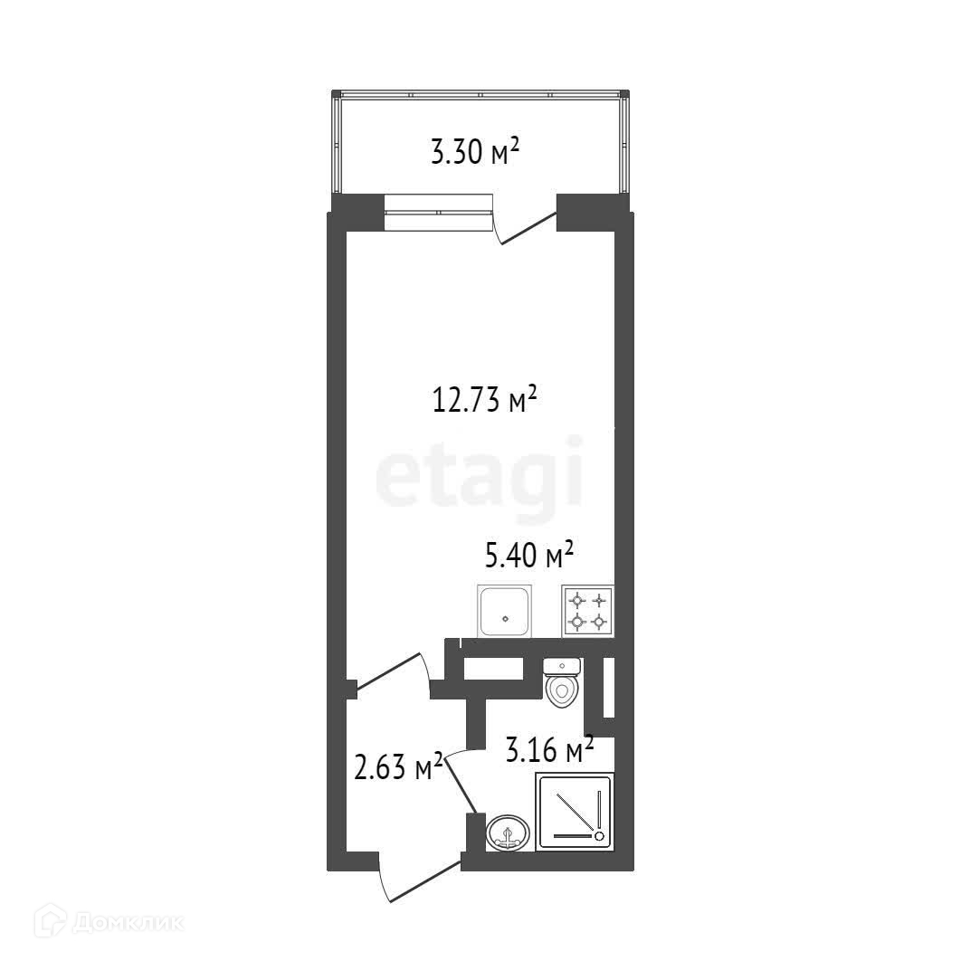 Общая площадь 25.7 м2
