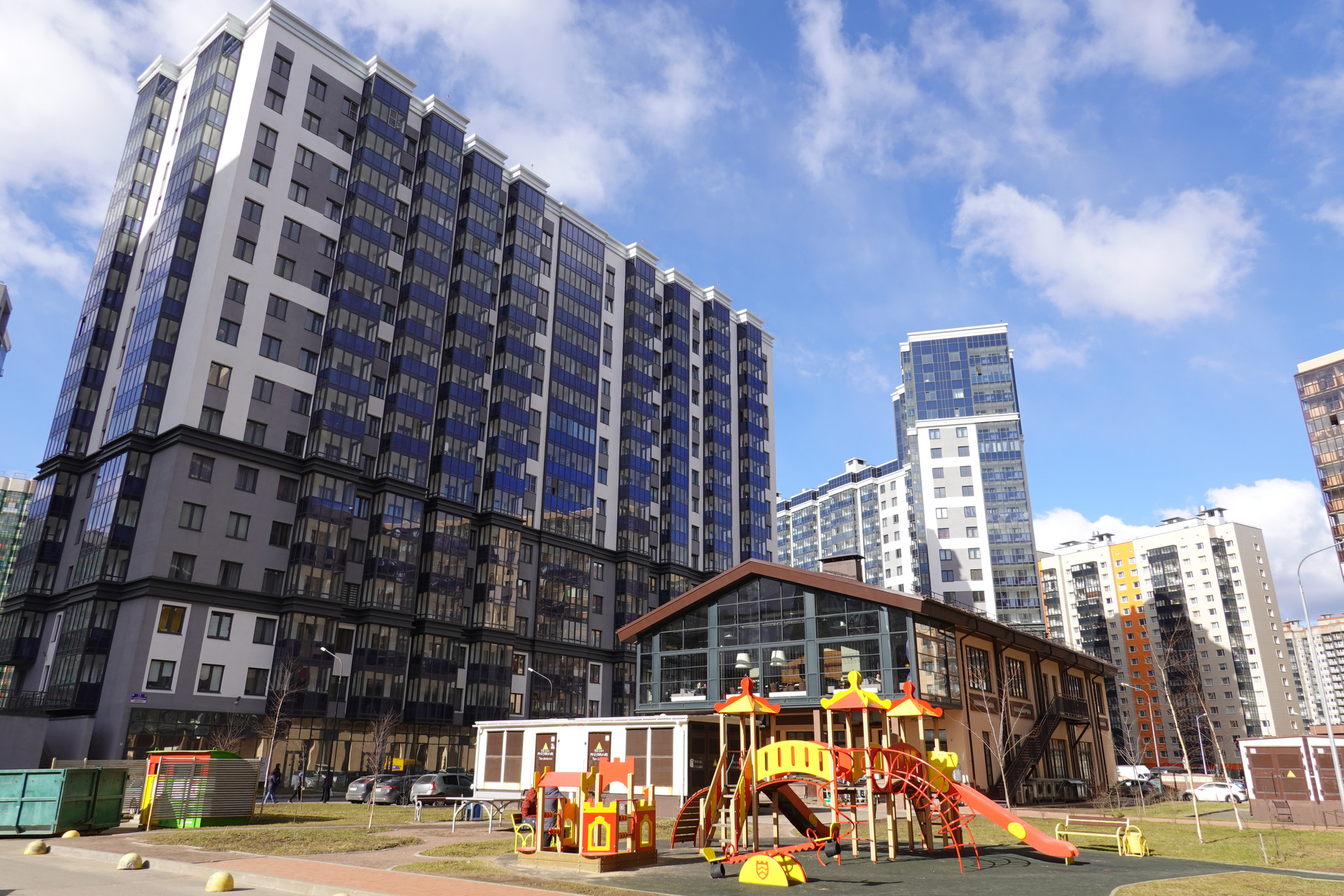 На первом этаже находится детский сад, во дворе новая школа и детские площадки, под домом паркинг. Рядом имеются все необходимые магазины, аптеки, кафе.