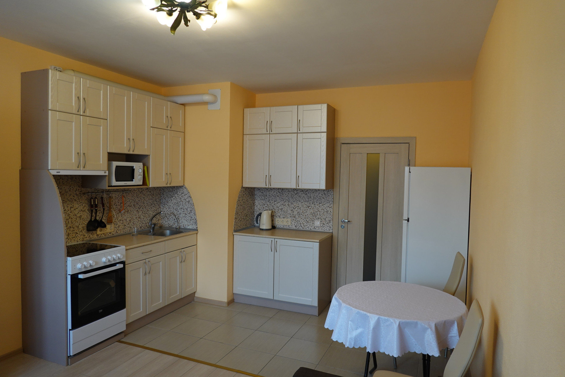 B квapтире имеется вся необходимая новая бытовая техника (холодильник, плита, микроволновка, стиральная машина, телевизор, пылесос и т.д.).