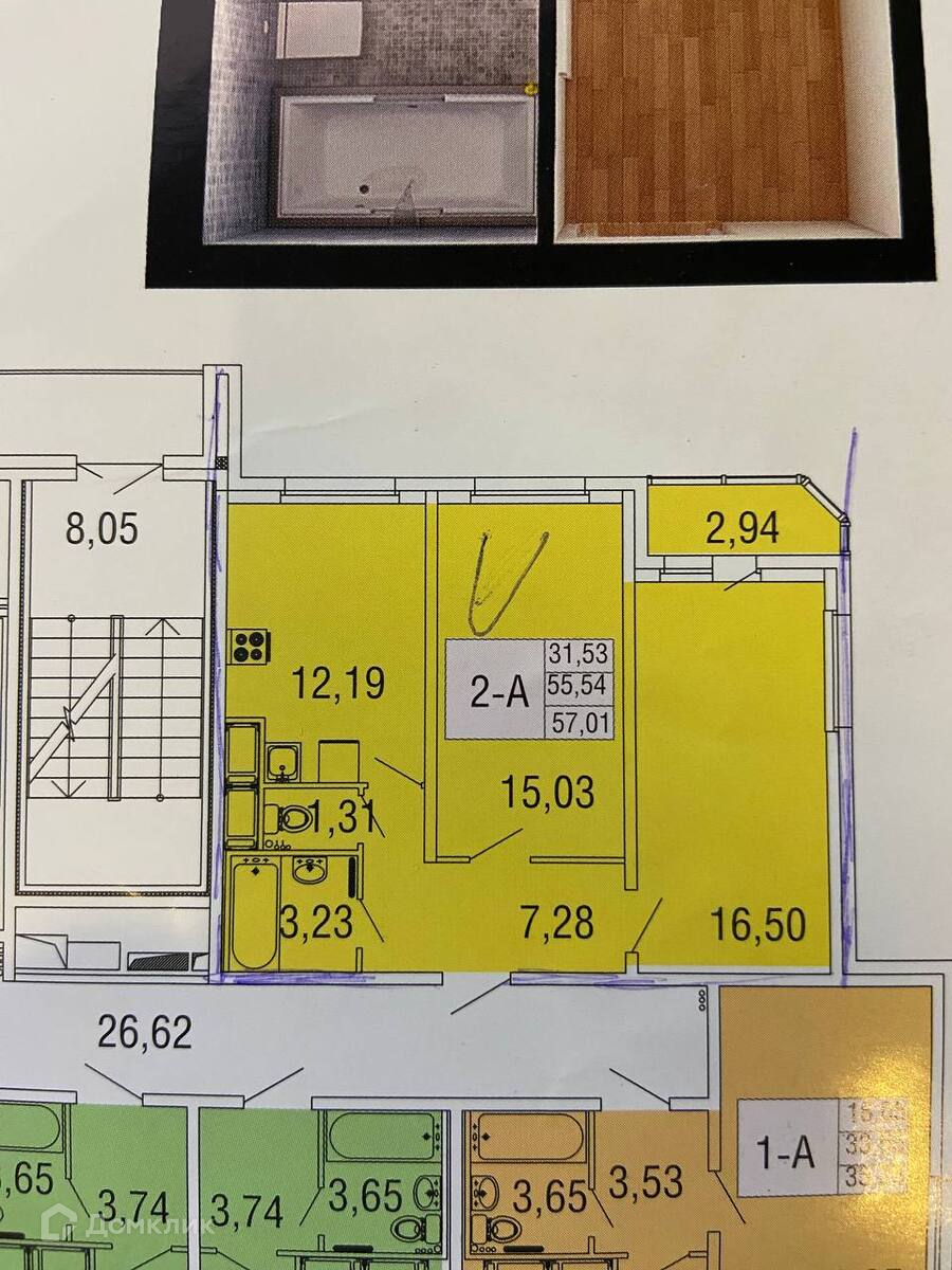 Общая площадь  57 кв. м.: