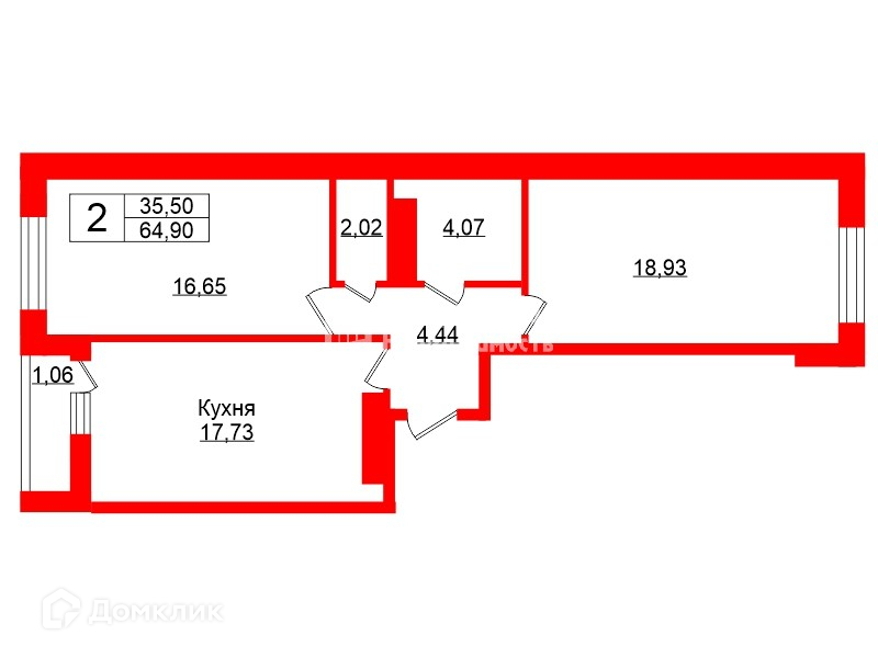 Общая площадь 64.9 м2