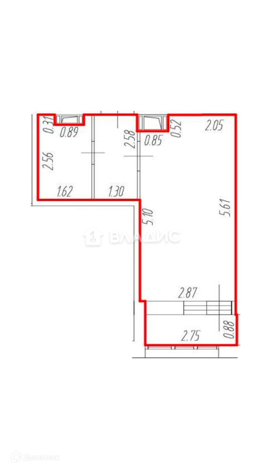 Высота потолков 2.6 м