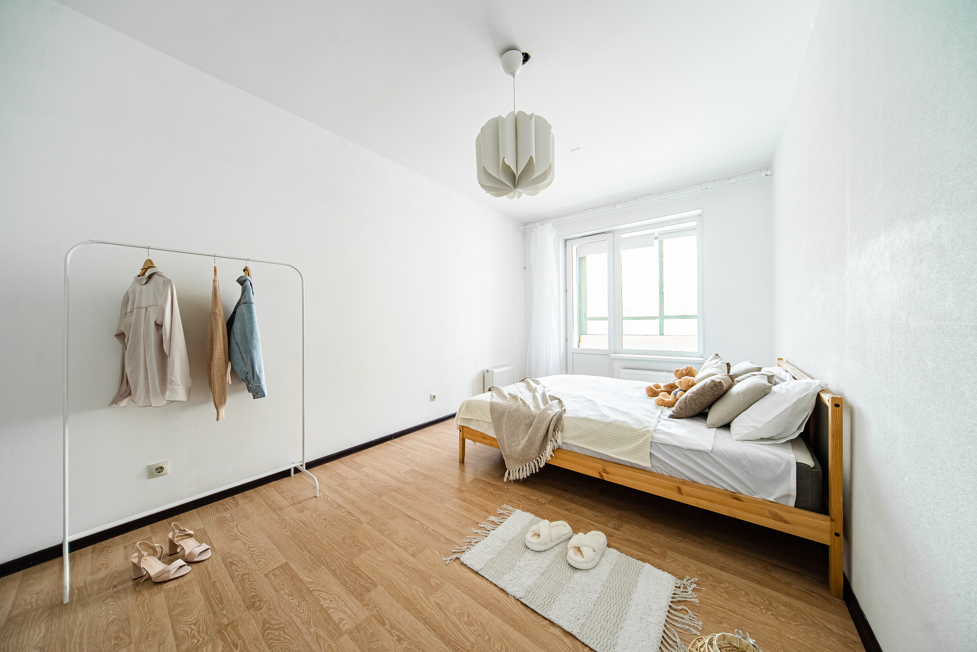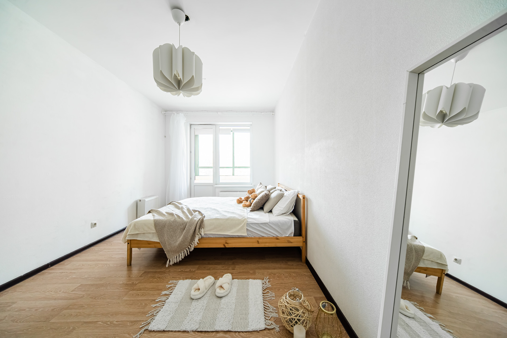 Пол ламинат. Санузел - кафель, душевая кабина. В квартире установлен шкаф, кровать (можем оставить по договоренности).