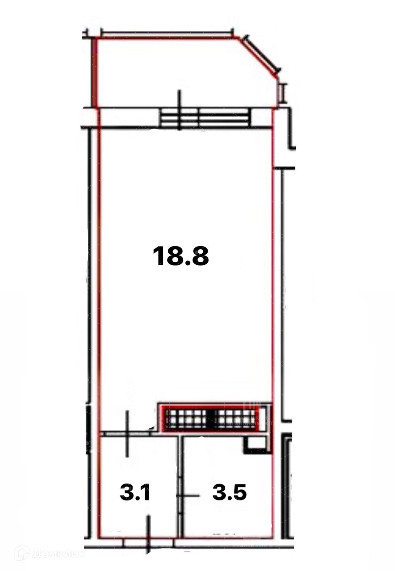 Общая площадь 25.4 м2