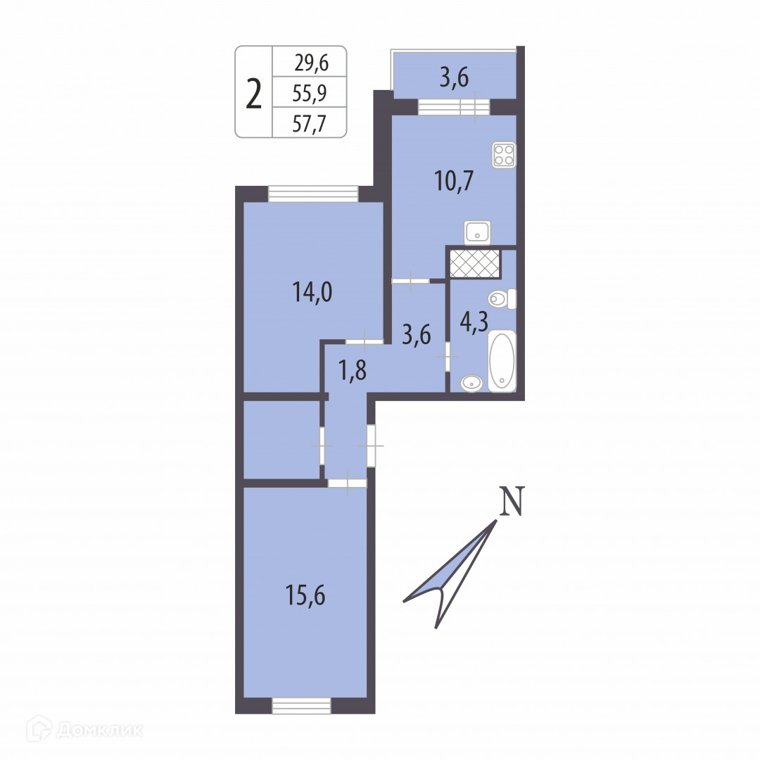 Общая площадь 55.9 м2
