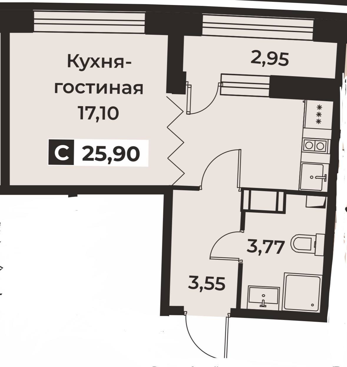 Общая площадь 25.9 м2