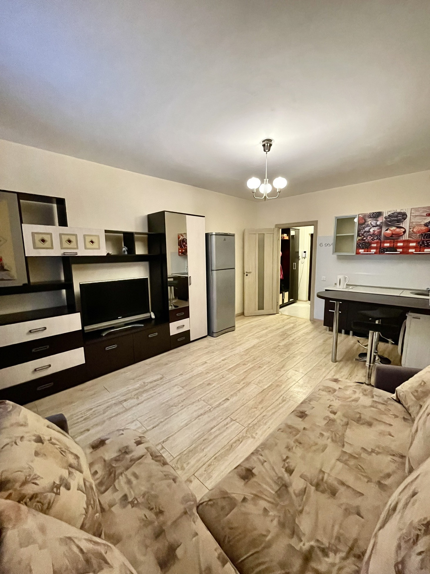 Остается полностью мебель и техника, состояние въезжай и живи.