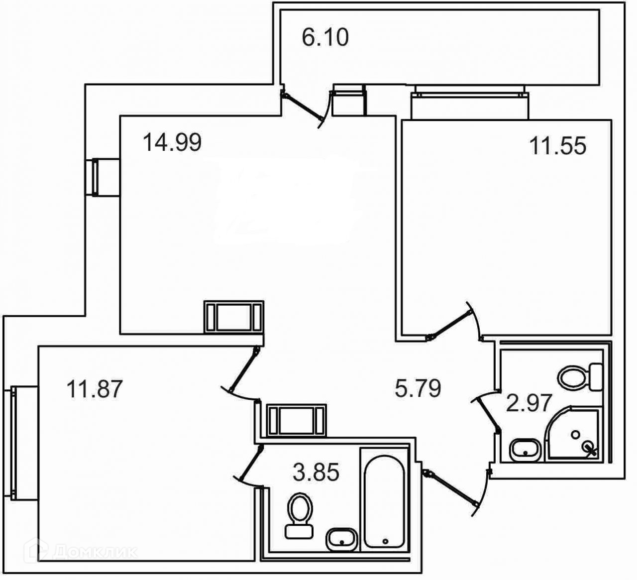 Общая площадь 57.2 м2