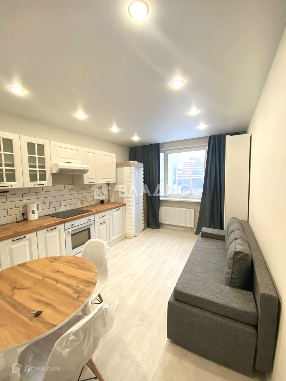 Квартира полностью оснащена мебелью и техникой, которая остаётся покупателю: кухонный гарнитур с бытовой техникой, стиральная машина, шкафы купе, диван, двуспальная кровать, комоды, столы и стулья.