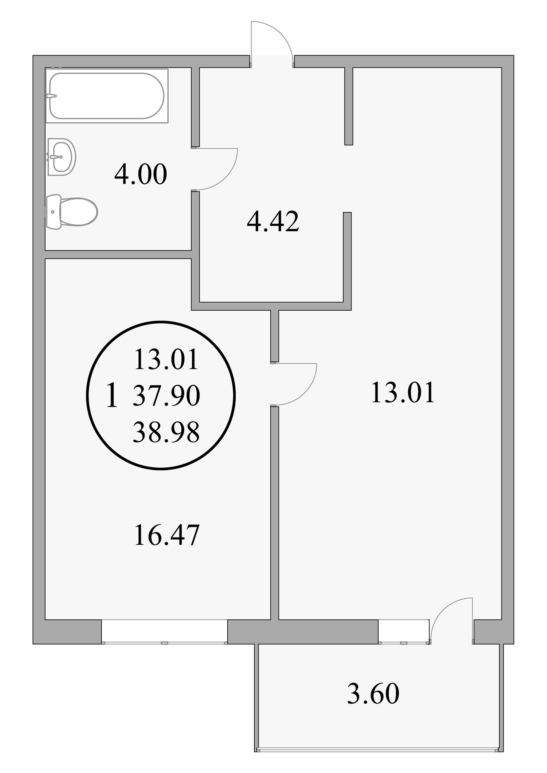 Общая площадь 39 м2