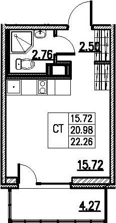 Общая площадь 22.26 м2