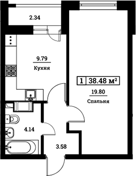 Общая площадь 38.48 м2