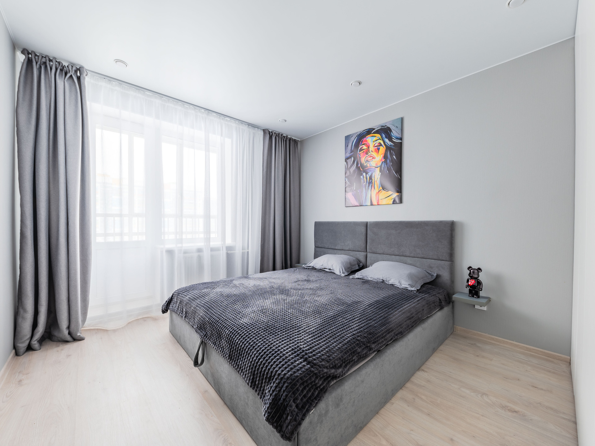 Большая система хранения. В коридоре и спальне встроенные шкафы в потолок.