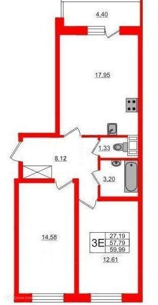 Продается просторная 2-комнатная квартира (евро-3) с ремонтом и отделкой в светлых тонах, площадью 57.79 м2 в спокойном районе недалеко от метро Девяткино.