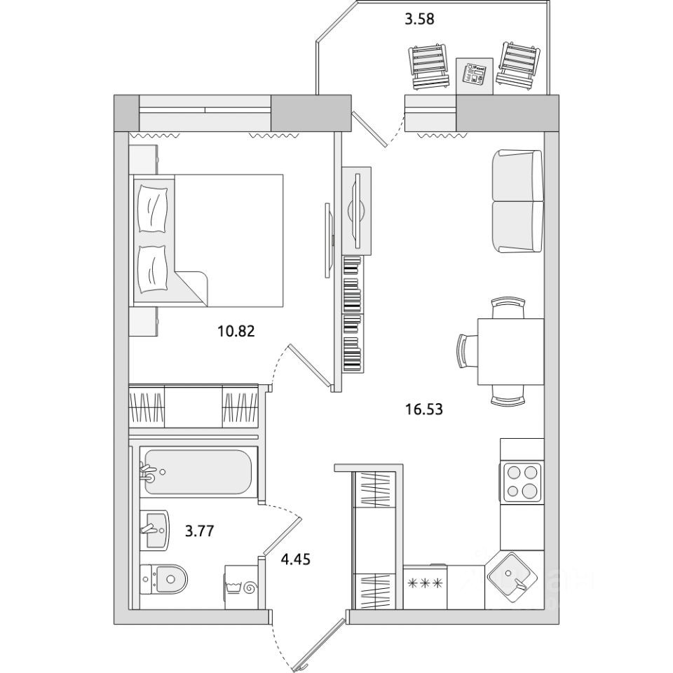 Балкон, лоджия 1 балкон