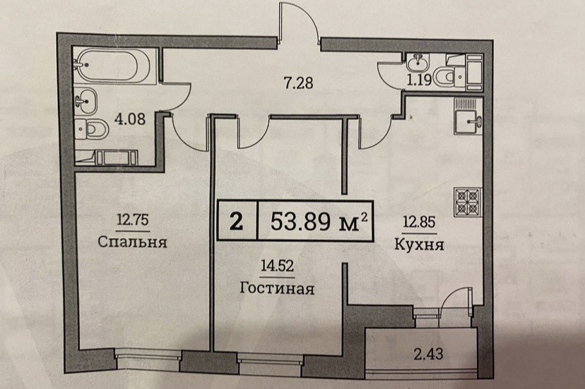 Общая площадь 54 м2