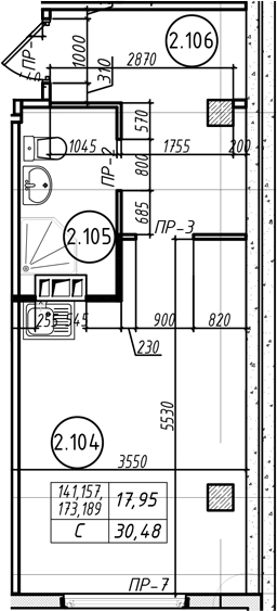 Общая площадь 30.48 м2