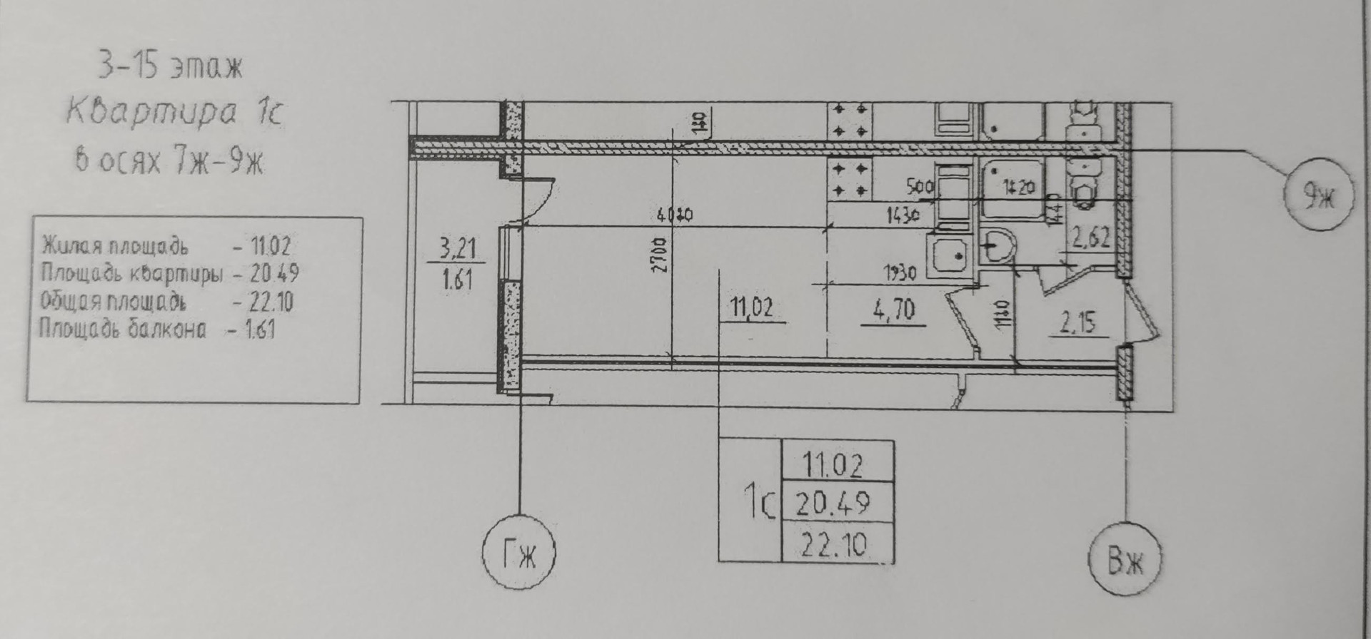 Общая площадь 20.4 м2